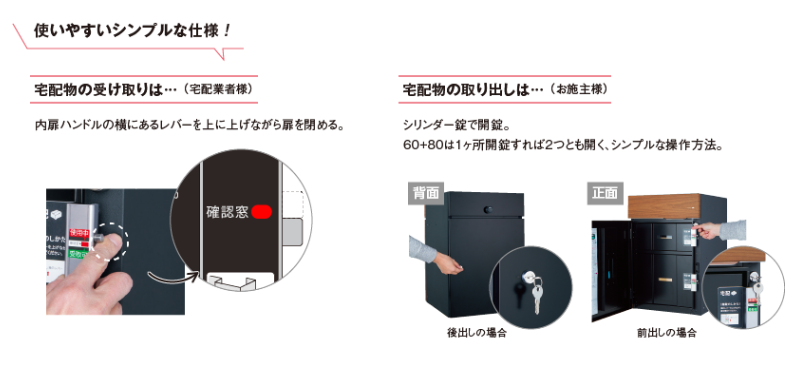 ユニソンの宅配ボックス「Vico(ヴィコDB)」は、受け取りの確認窓が見えないすっきりしたデザインが特長です。受け取る宅配物のサイズ・重量に合わせて商品が選べます。