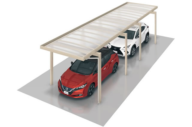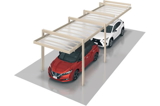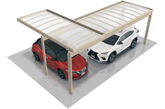 →施工事例「敷地に合わせて自由な組み合わせが出来るカーポート」
