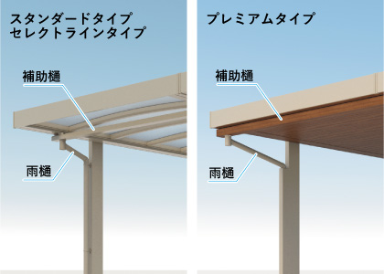 カーポート・マルチルーフと同色で一体感のある補助樋