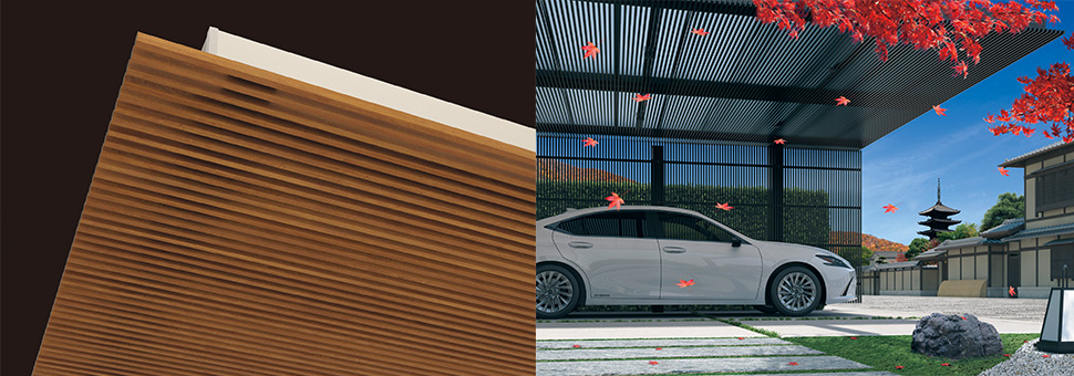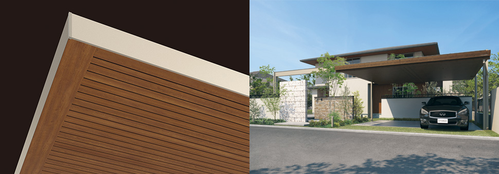 屋根に木調の天井材をプラスし室内のような特別な空間が高級感を演出します。
