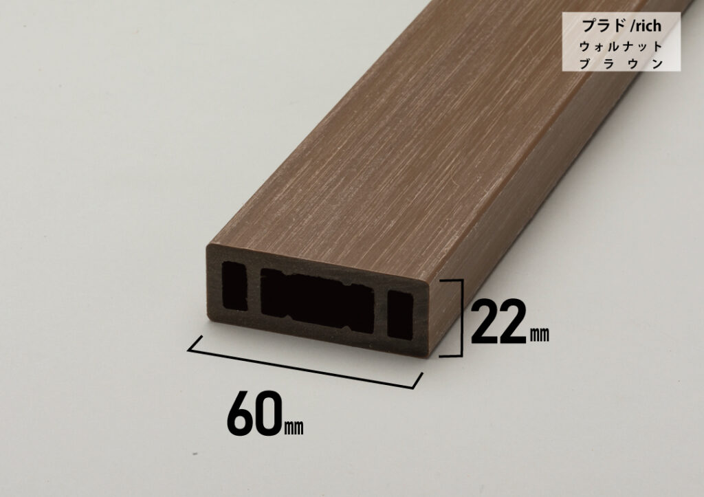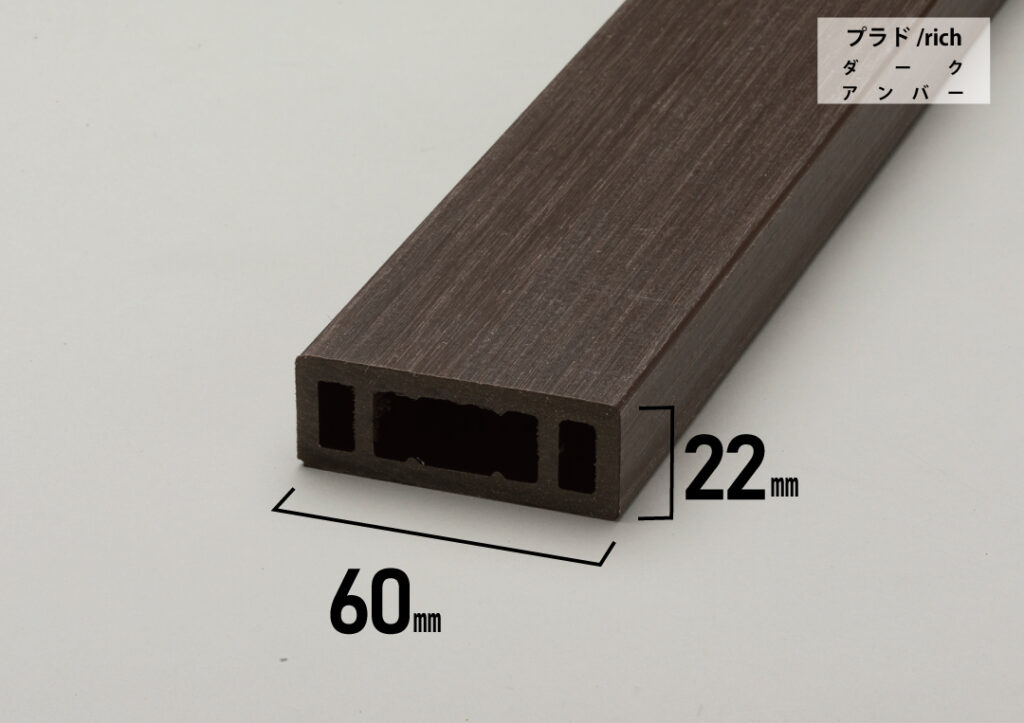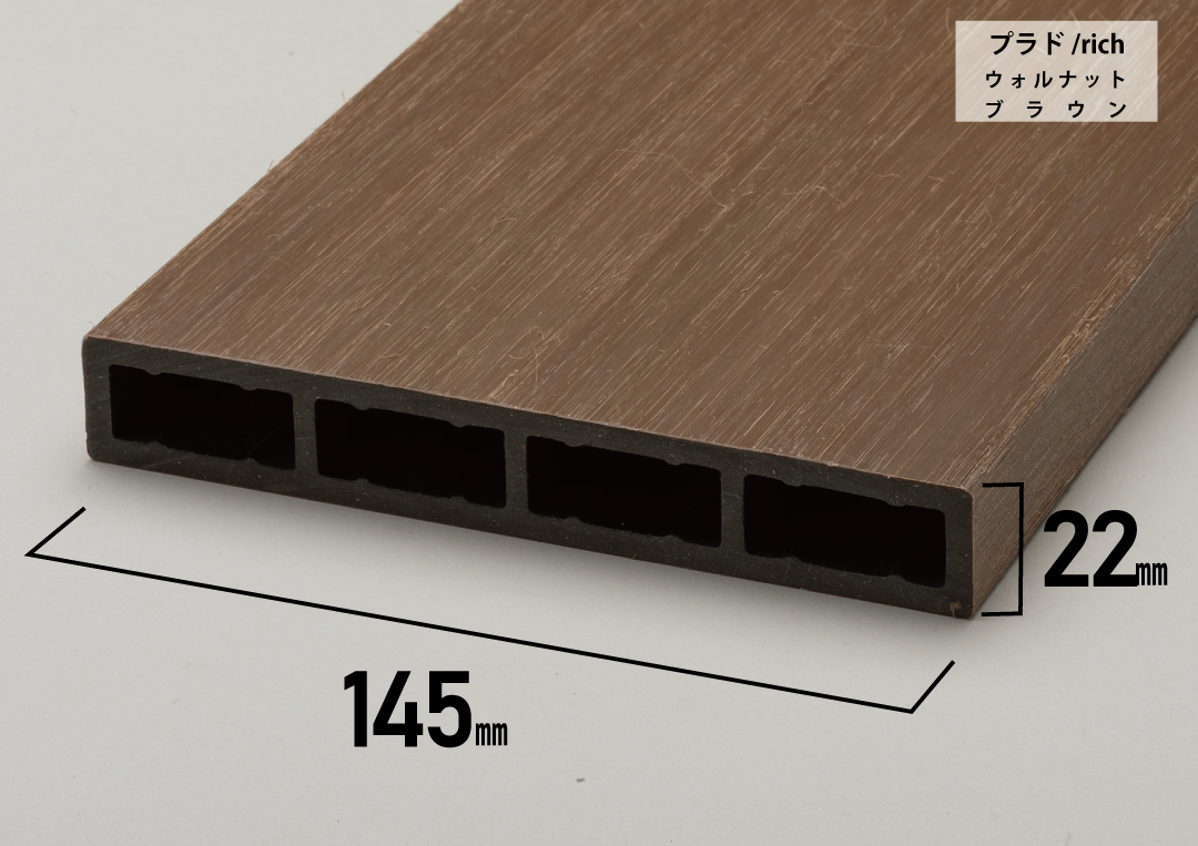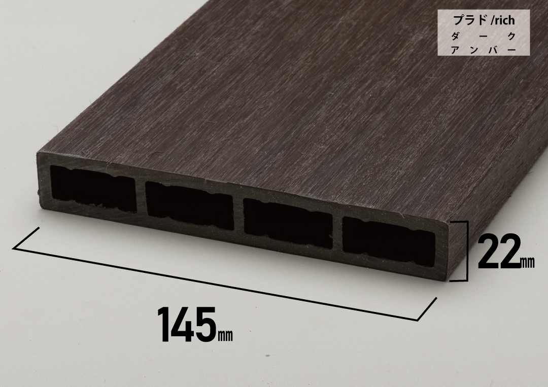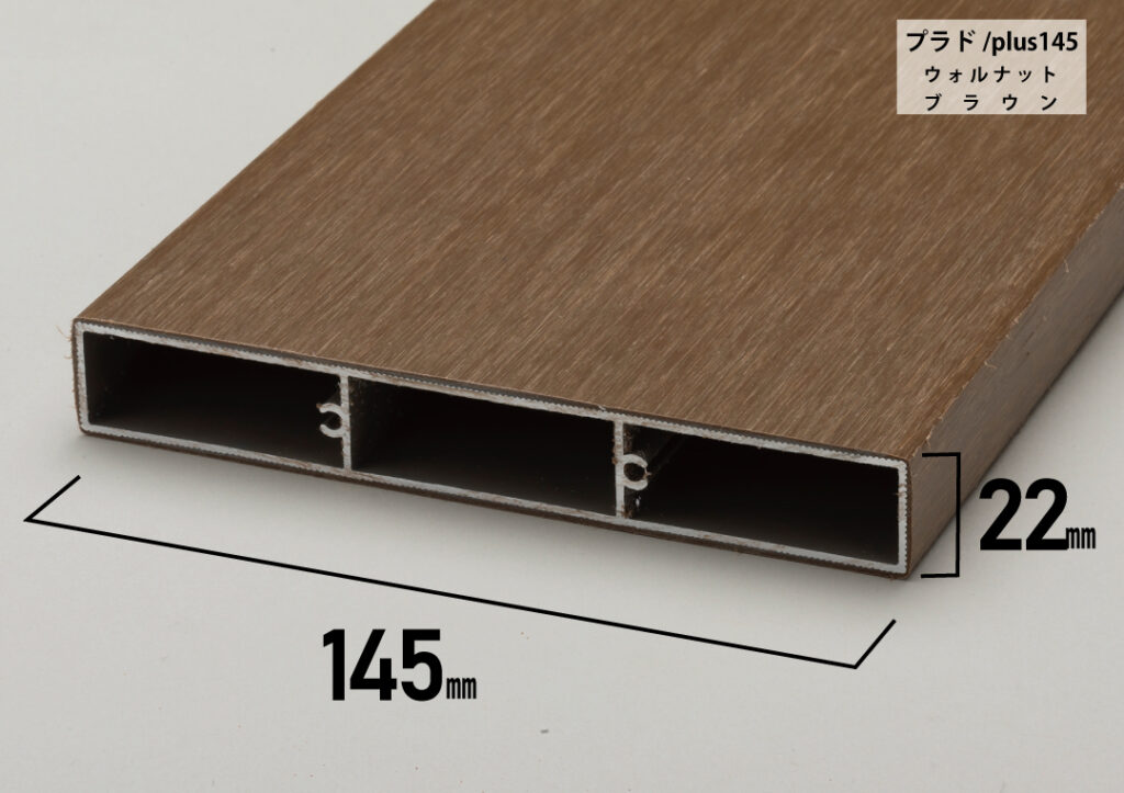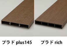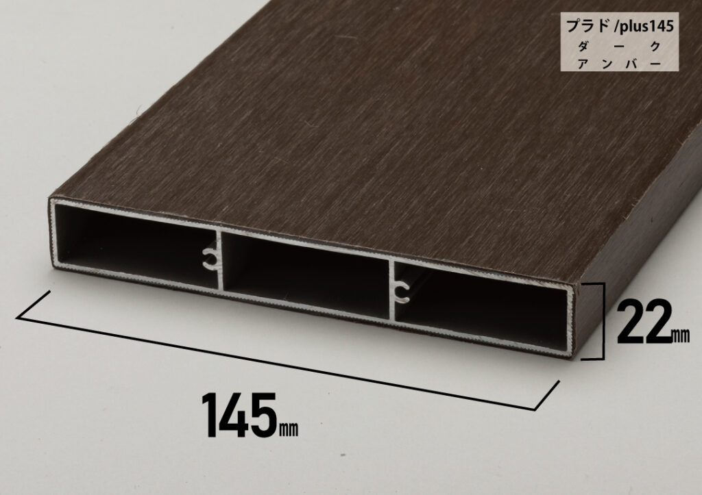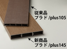 従来品を改良したプラド/plus145は素材が樹脂だけの板材よりも、伸縮変化が劇的に少なくなります。また表面の質感をプラド/richと同じ木目調で再現することができました。