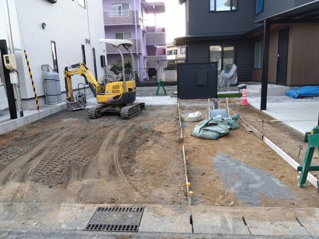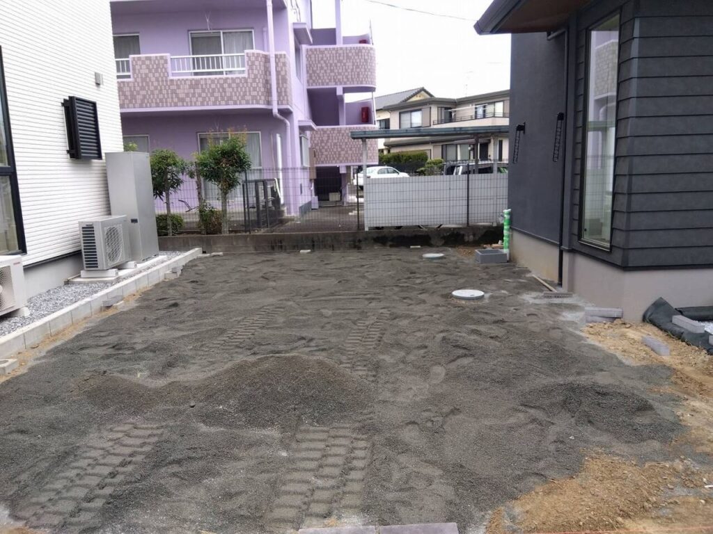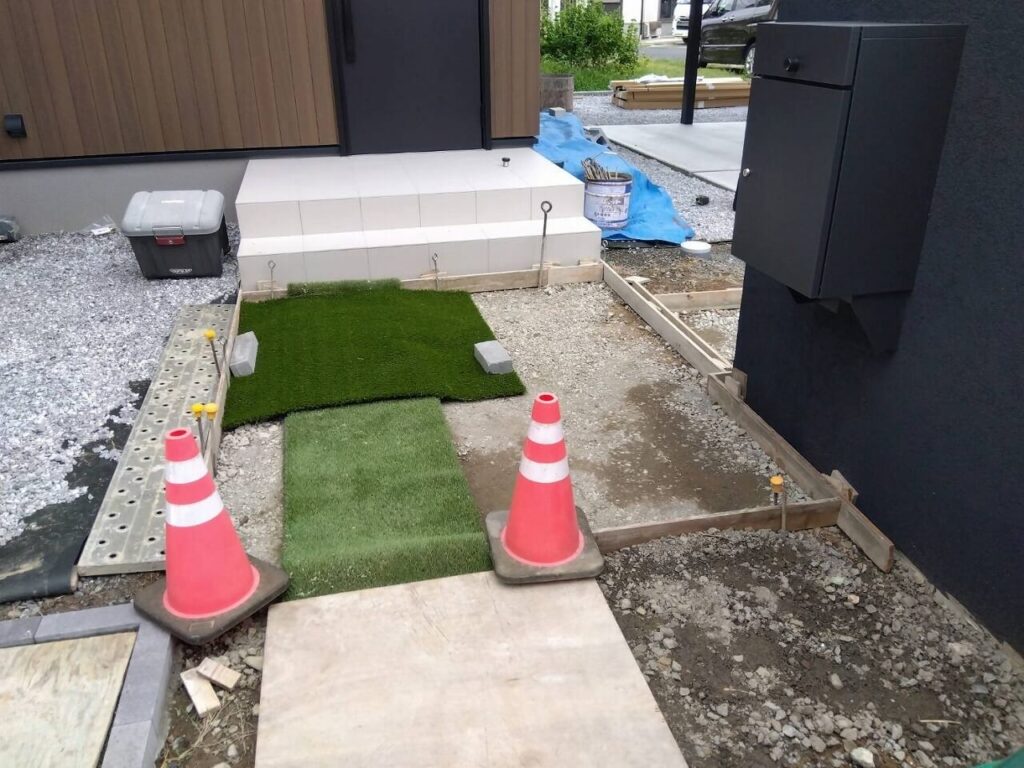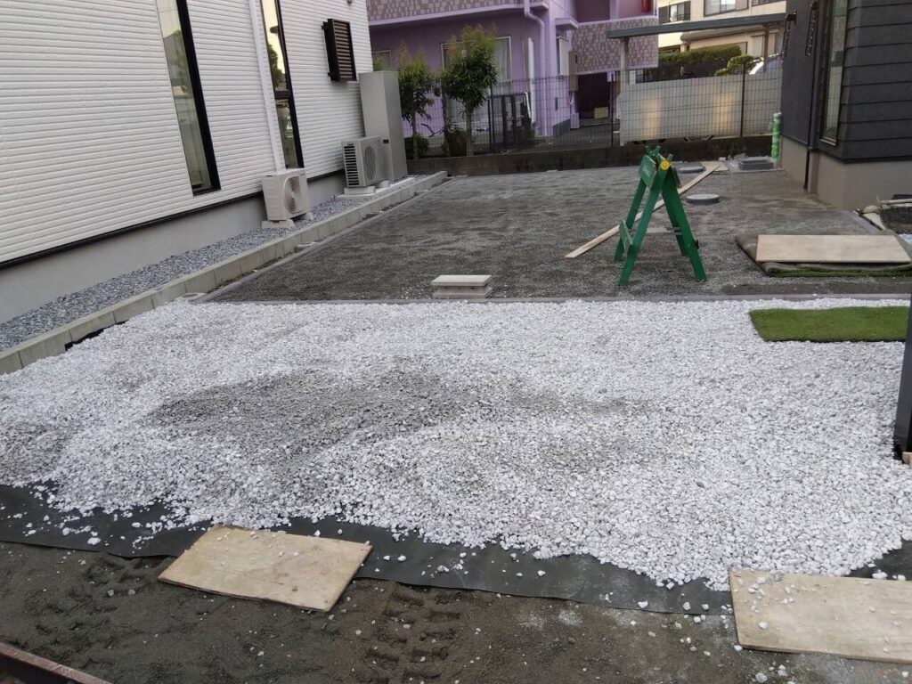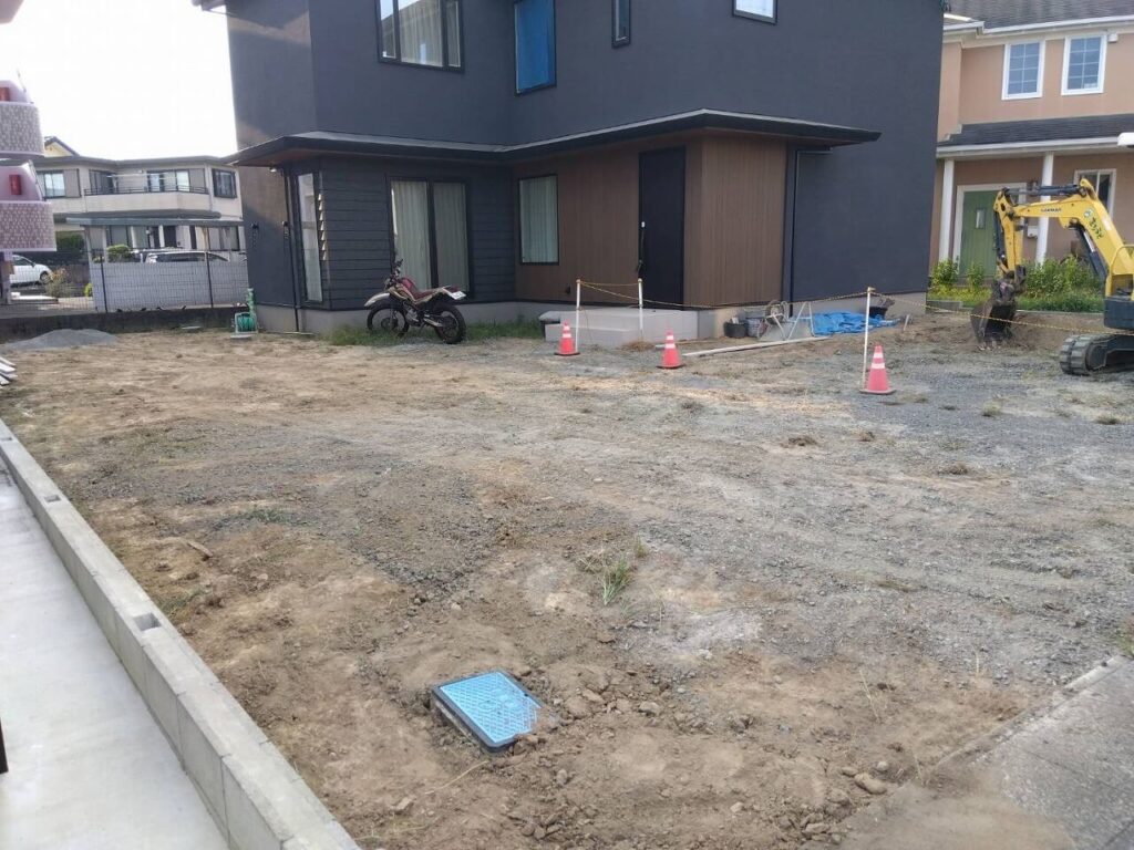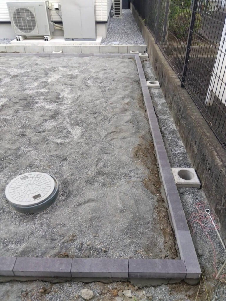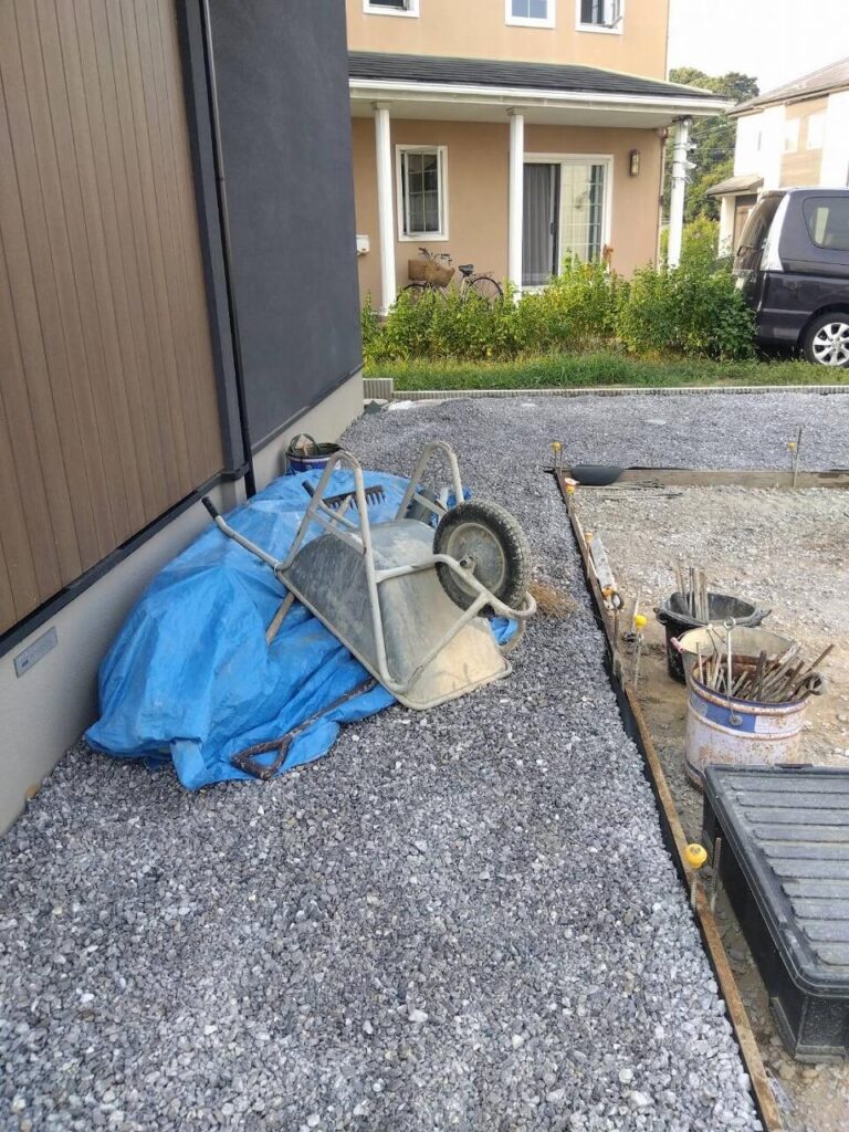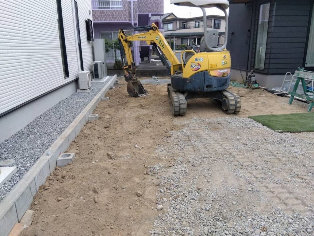 お庭はお施主様がご自身で人工芝を敷くということで、下地まで施工します。