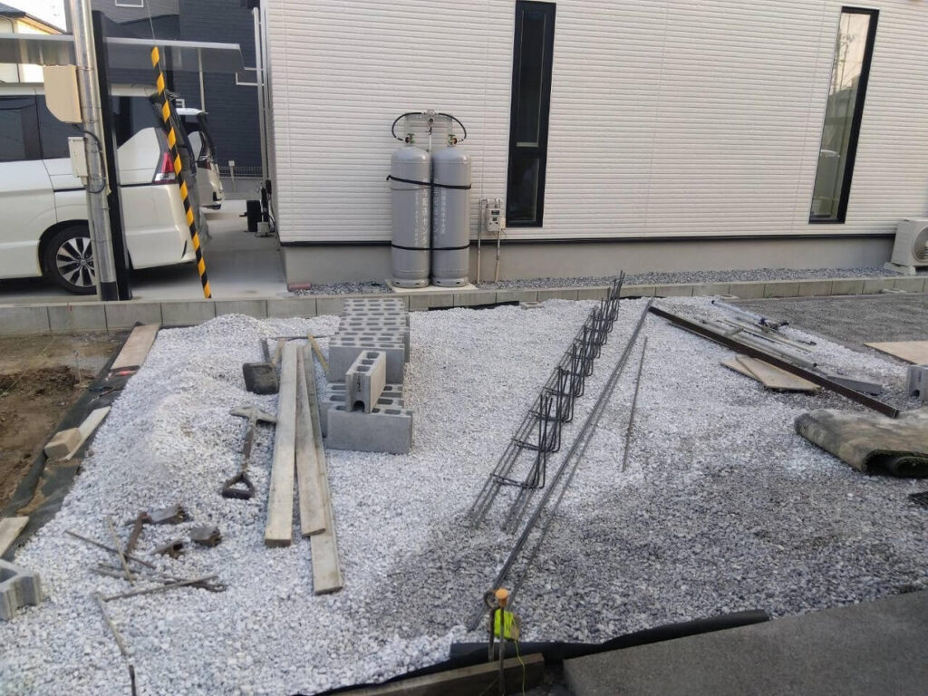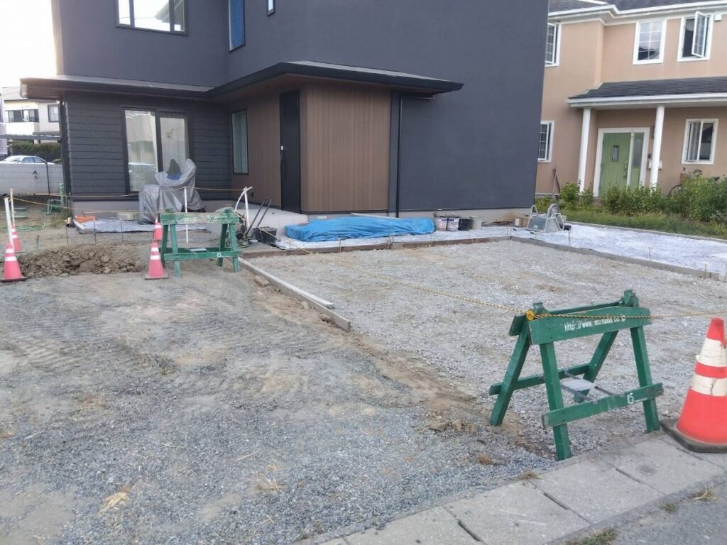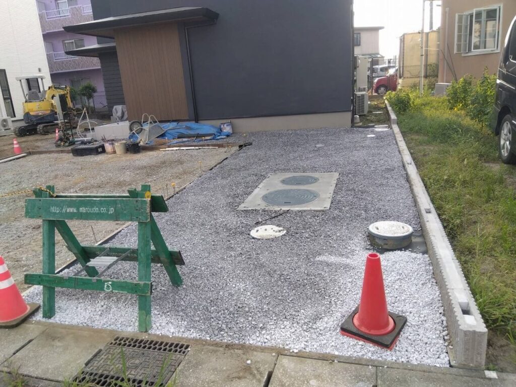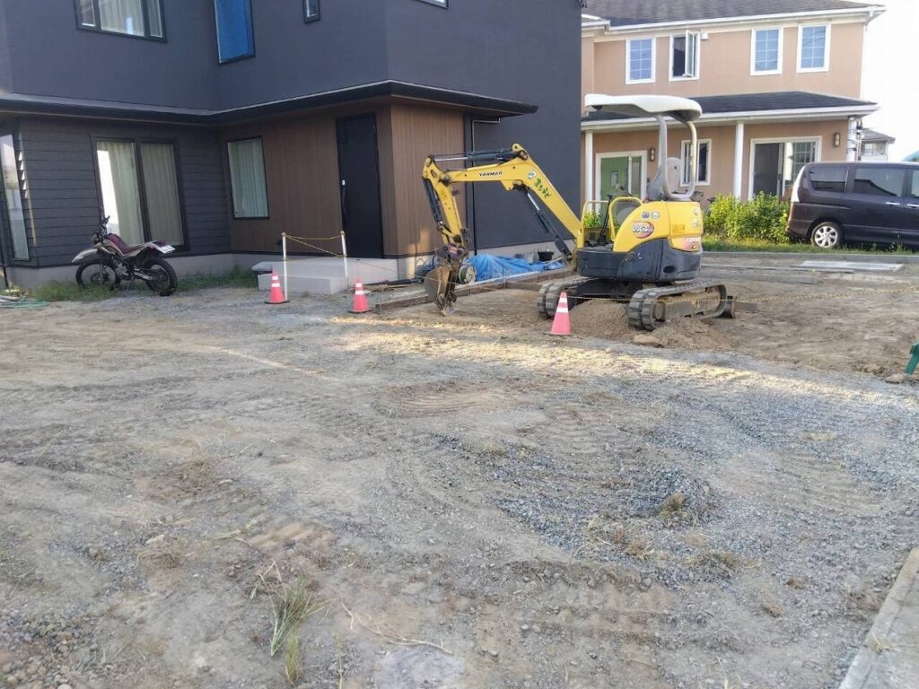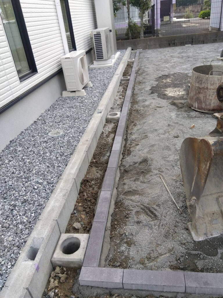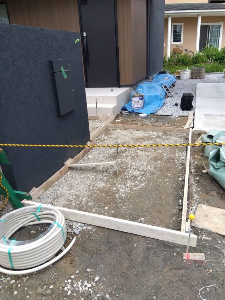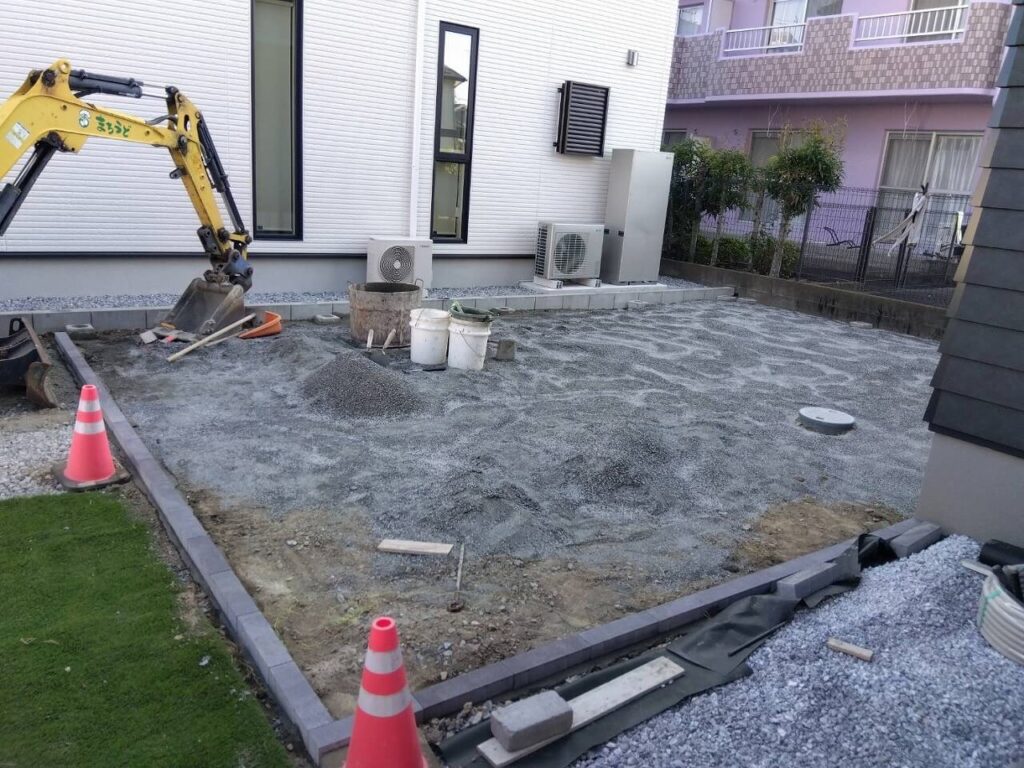 お庭はお施主様がご自身で人工芝を敷くということで、下地まで施工します。