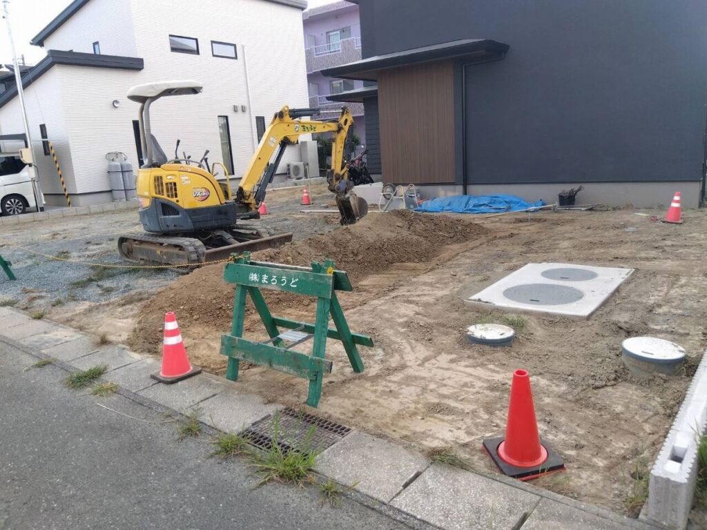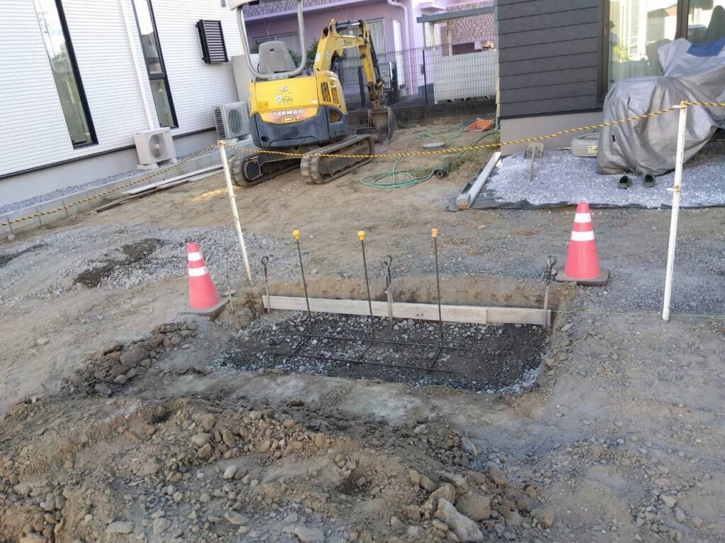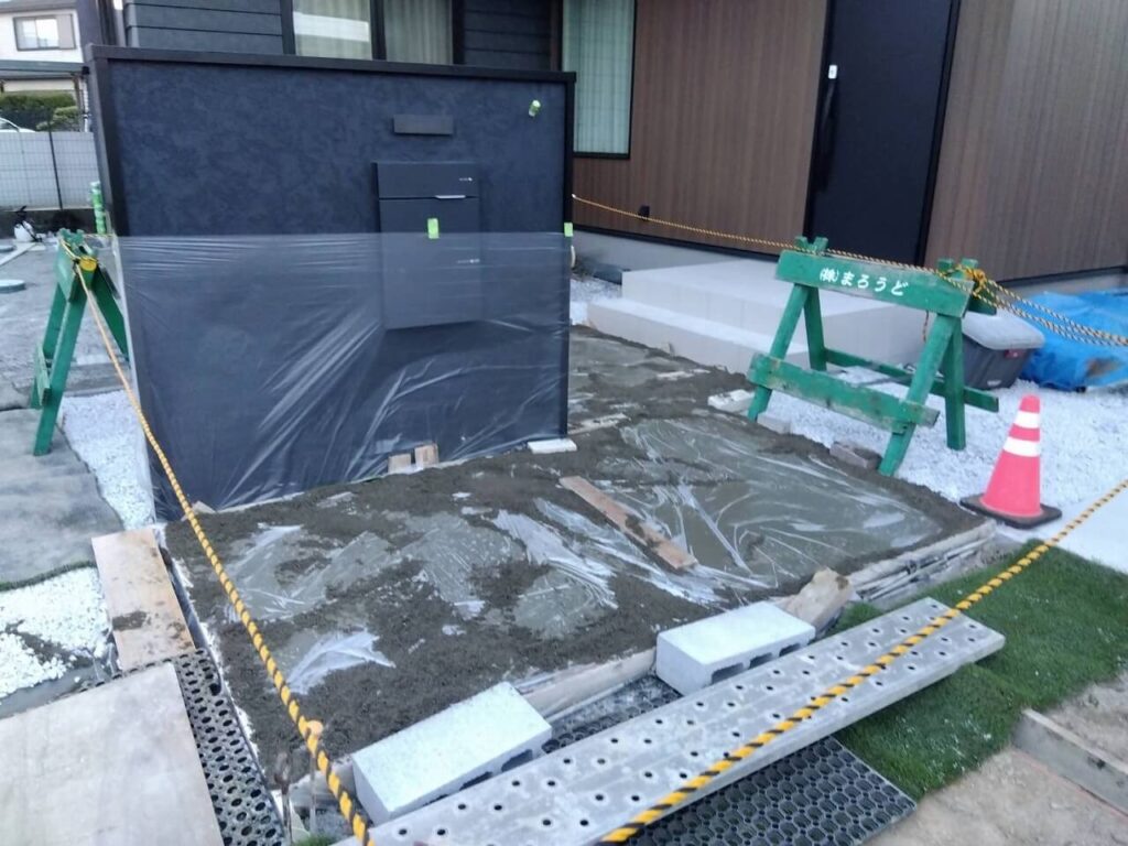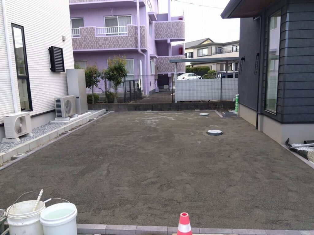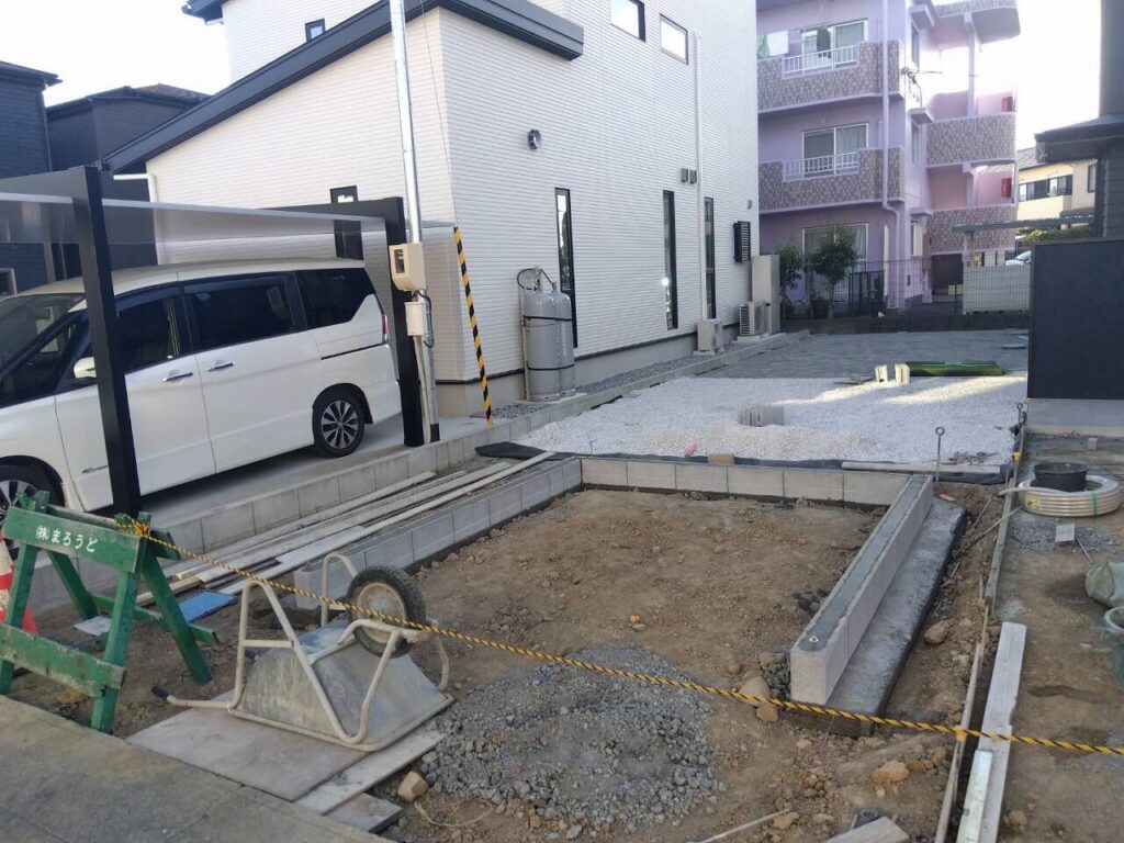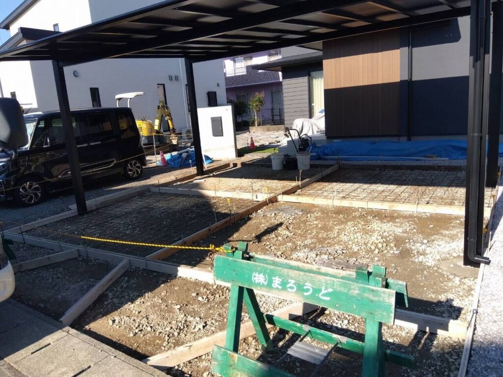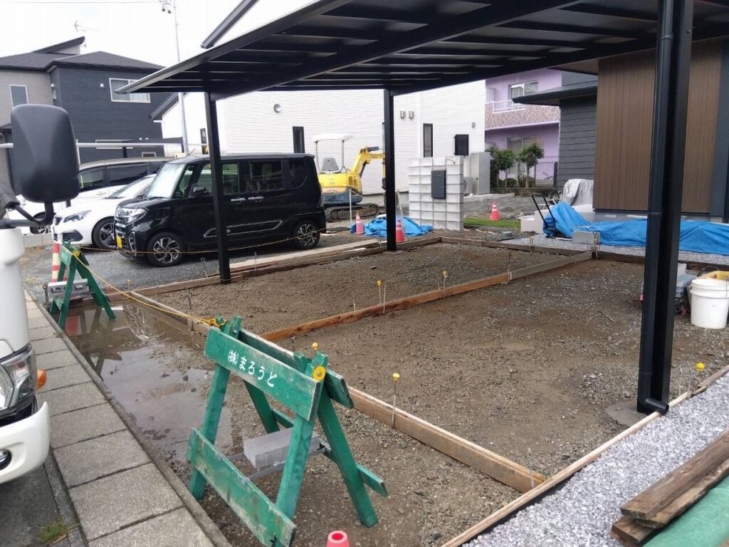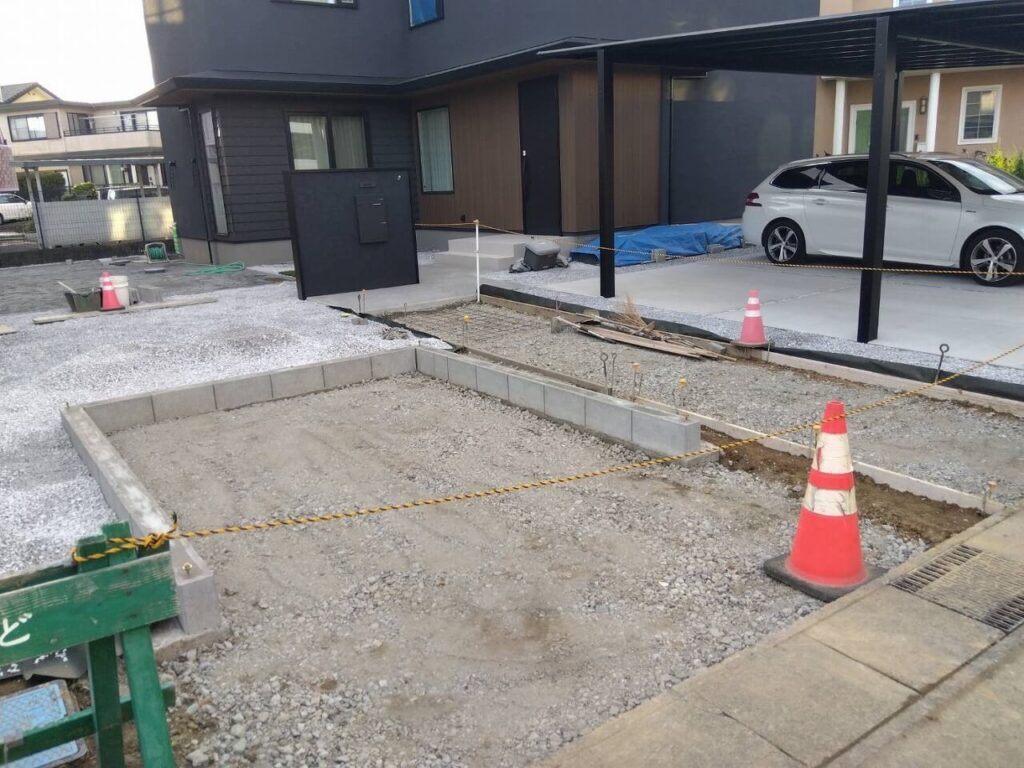 お庭はお施主様がご自身で人工芝を敷くということで、下地まで施工します。