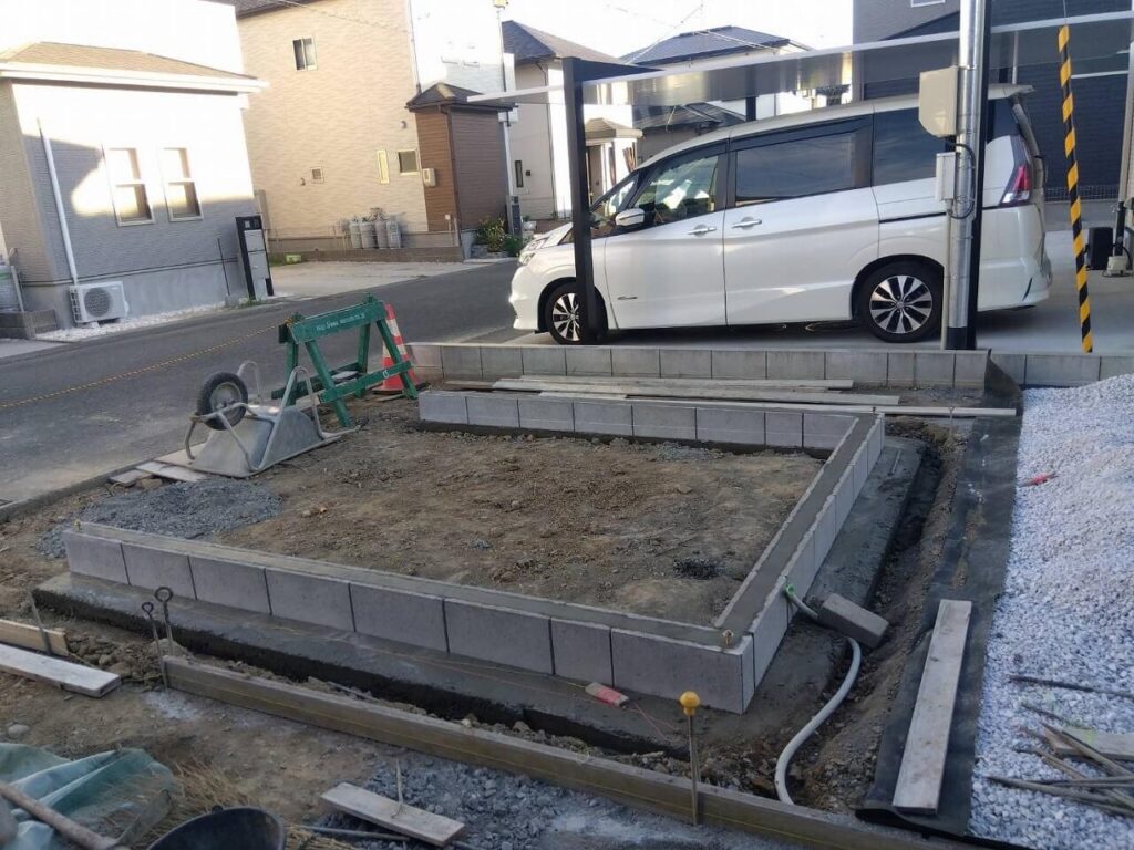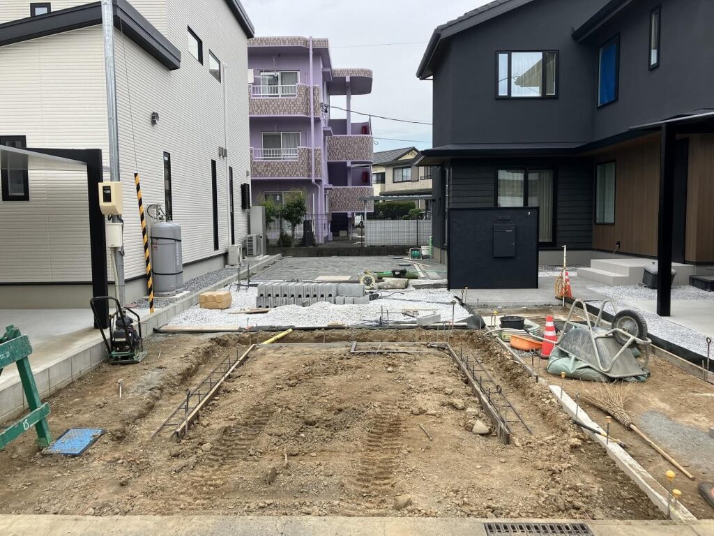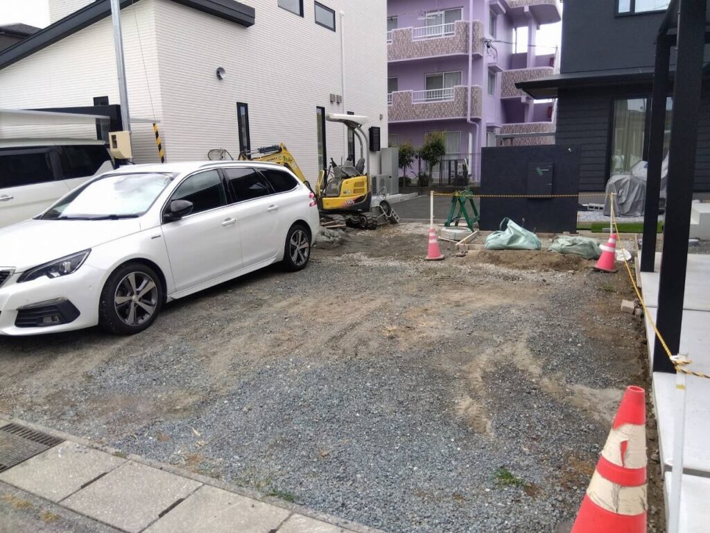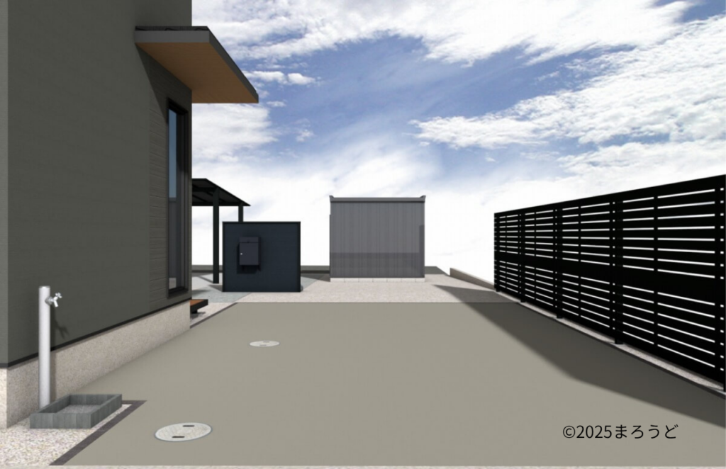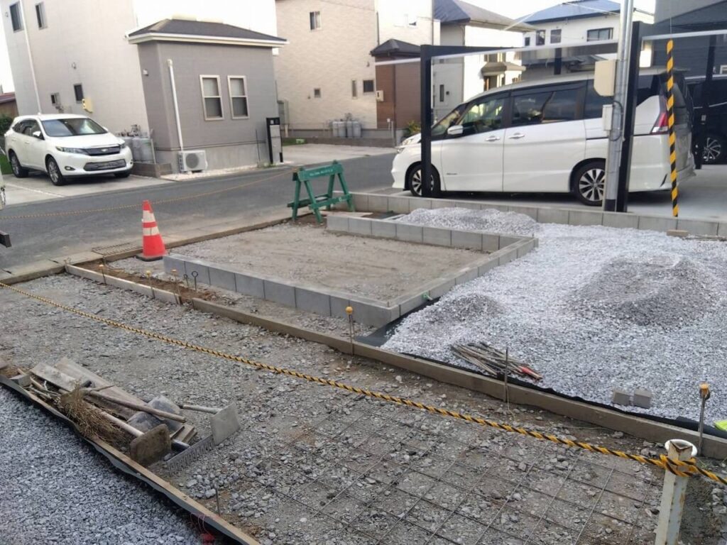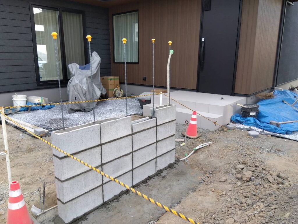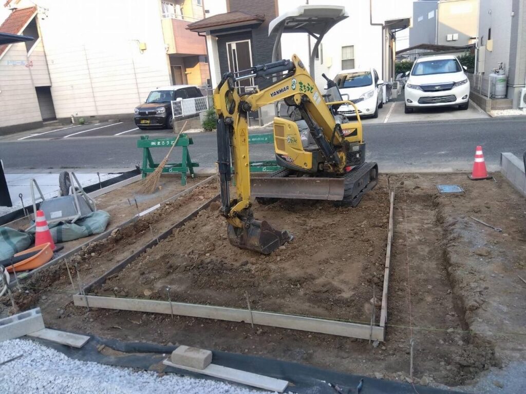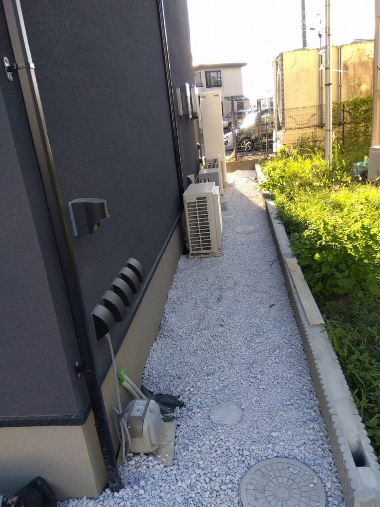 お庭はお施主様がご自身で人工芝を敷くということで、下地まで施工します。