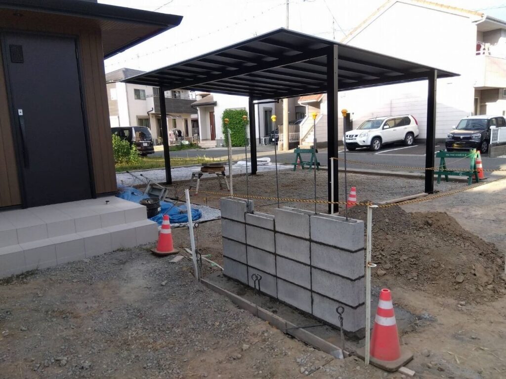 お施主様には《カーポートは車の中がかなり涼しいし、夏は下で涼める。鳥のフンも見えない。門壁は思っていたよりもグレーになって良かった。》とおっしゃっていただけました。