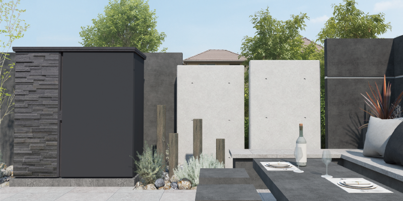 門まわりだけでなく、お庭の空間にもお使いいただけます。コンクレアとラルゴ(デザイン物置)の組み合わせが、庭に上質な表情をプラス。RC調の質感が緑や小物と自然に調和します。手軽に取り入れて、毎日の暮らしを特別にします。