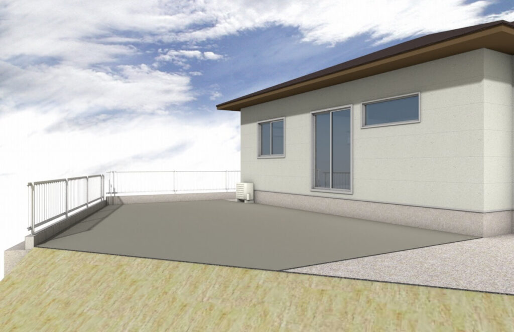 お施主様がご自身で人工芝をされるということで、下地まで施工しました。樹脂材「エコマウッド」で見切りとしました。