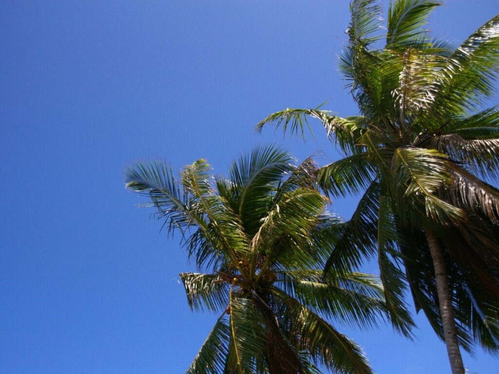 青い空の下、街路樹として並んだヤシの木。南国の海沿いといったら真っ先に浮かぶのがヤシの木ですね。