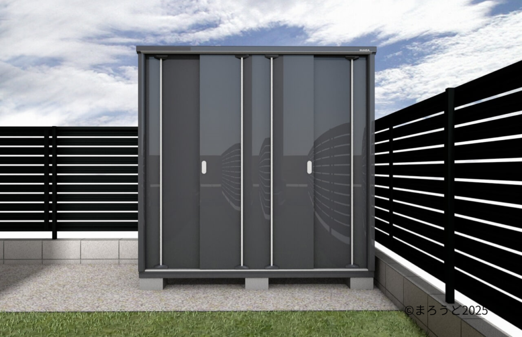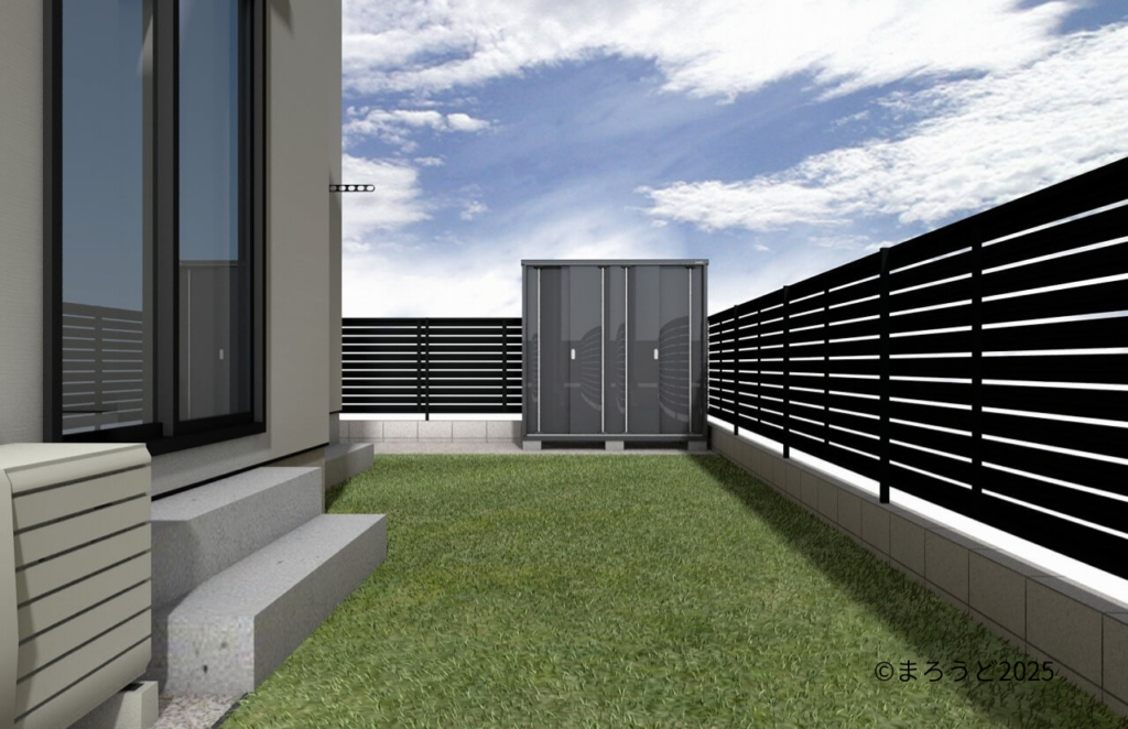 庭で使う物や常に使わない物を収納する物置「イナバ シンプリー」も設置しました。
