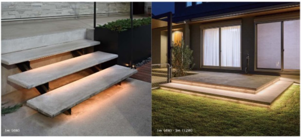 変貌自在のラインライト『プリモ シームレスライト』の繋ぎ目を感じさせないシームレスで美しい光は、夜のステップやタイルデッキを上質に演出します。