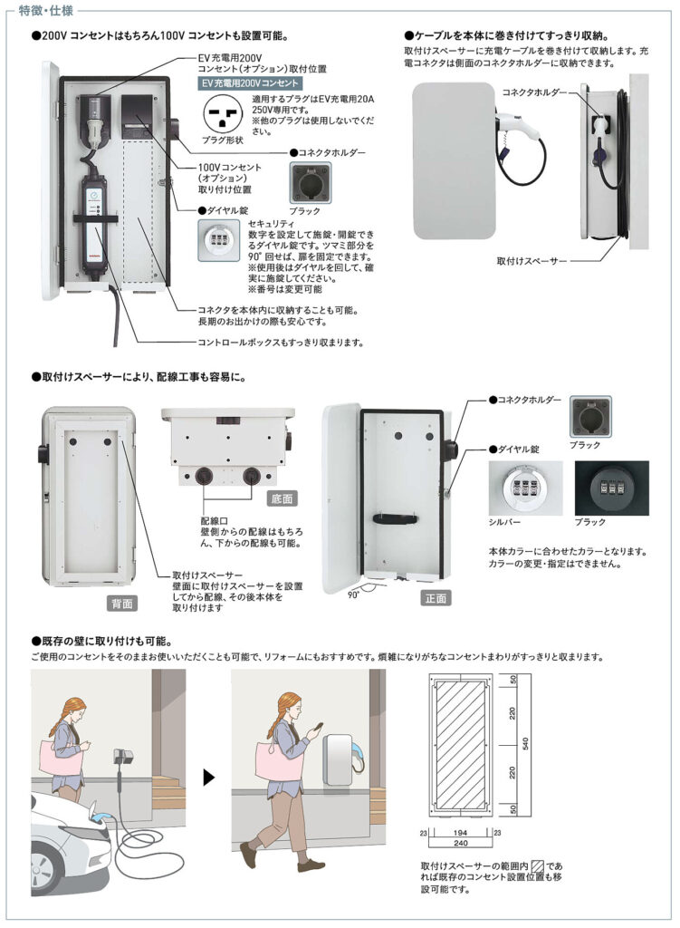 充電設備をすっきり整える充電コンセント付きボックス『ヴィコ EVポートWH』