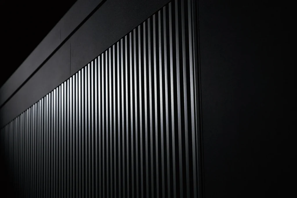 MODELLISTA×YODOKOのこだわりの1つである、テーパーと曲面で象ったフレーム。継ぎ目と凹凸感を極力廃し、1枚の面に部材を収めることで一体のデザイン美を表現しています。