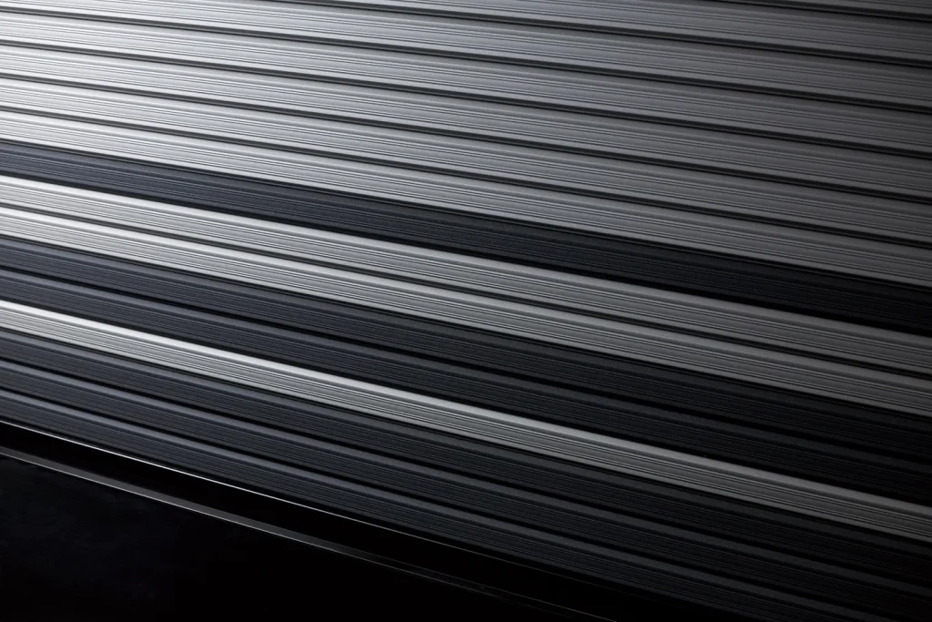 つや消しメタリックのブラックとシルバーを組み合わせた、遠目から見てもグラデーションが美しいシャッターに仕上げています。