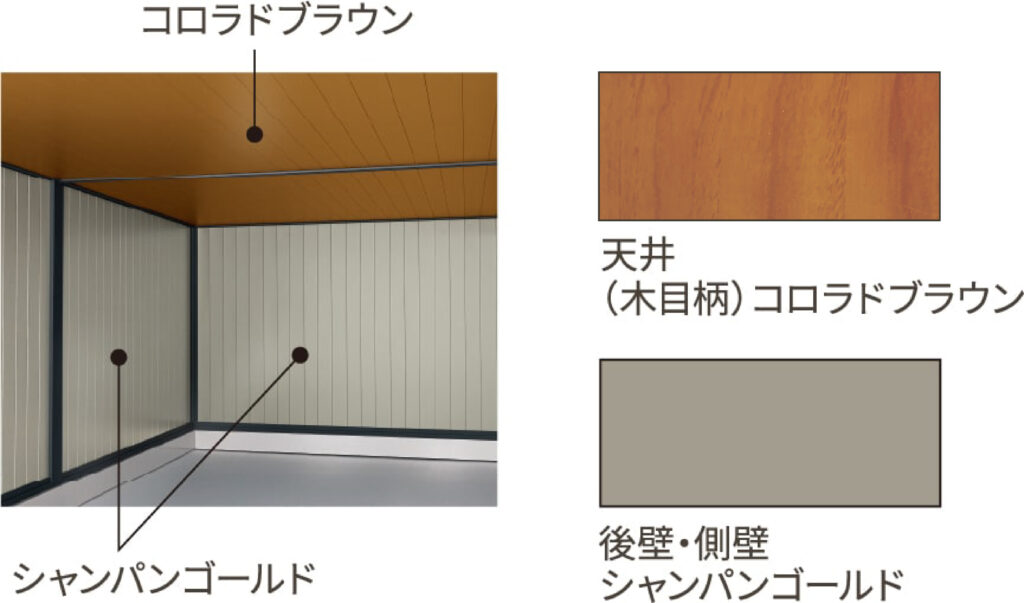 Aタイプ「シルバー×スモークシルバー」とBタイプ「コロラドブラウン×シャンパンゴールド」の本モデル専用内装材2パターンから選べます。グラスウールを裏貼りした断熱仕様も選択できます。