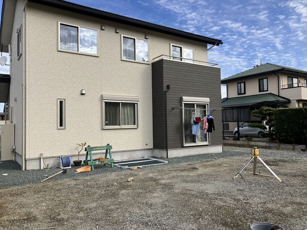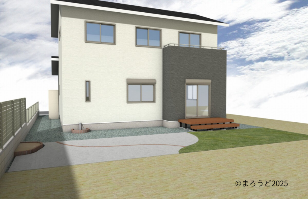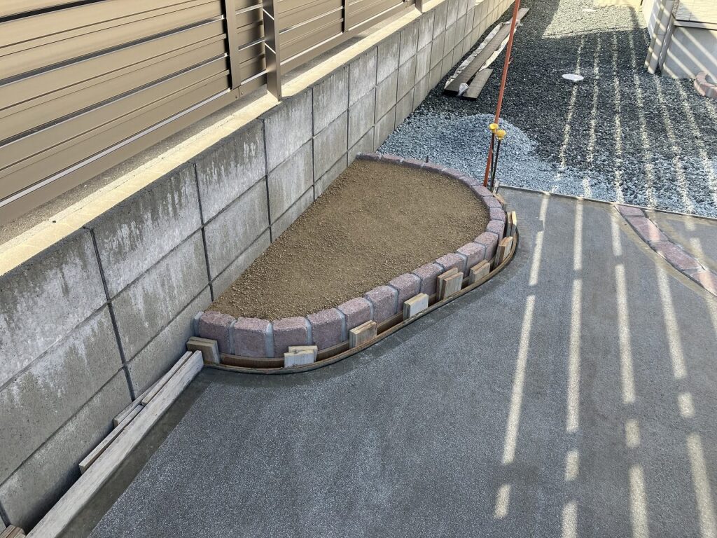 曲線がアクセントの柔らかいイメージの新築外構です。