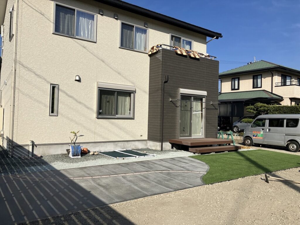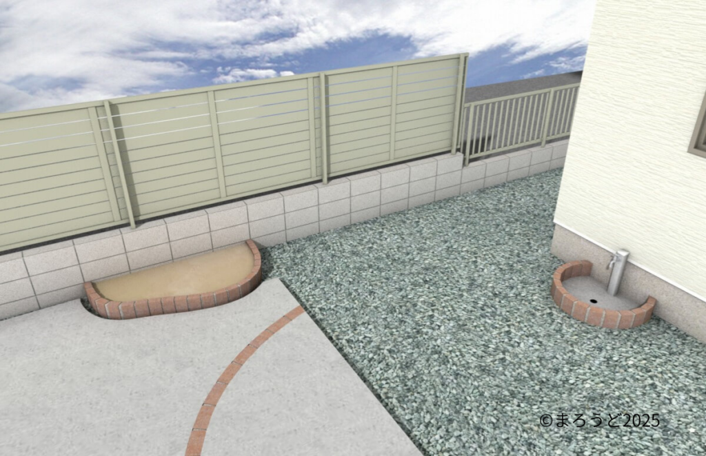 →施工事例「レンガで作る優しいカーブがアクセント!広々とした新築外構ができました」