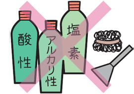 アルカリ性・酸性・塩素系の洗剤はアルミ素材が錆びる恐れがあるため使用しないでください。