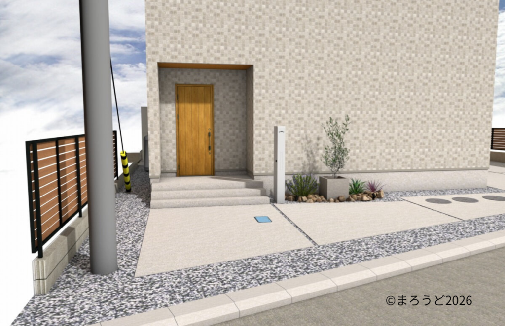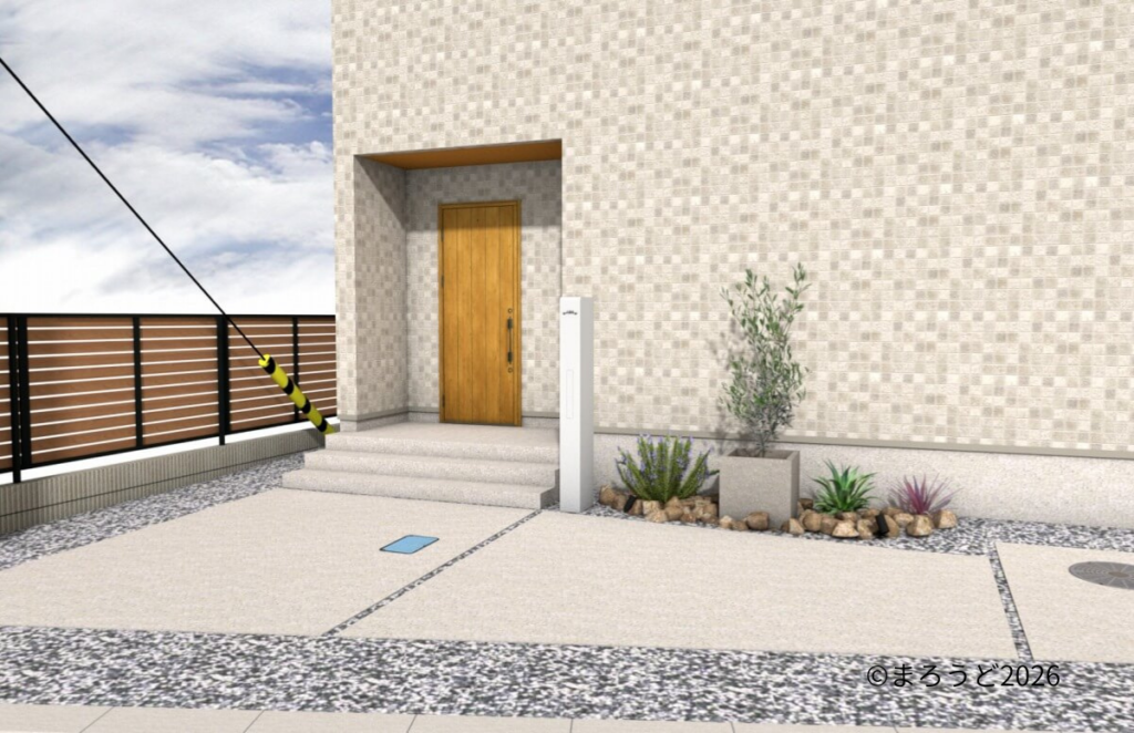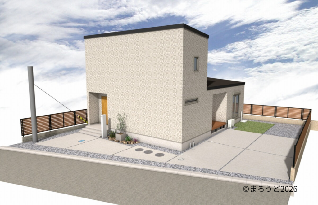 →施工日記「木目調をアクセントにスッキリした外観の新築外構です。」