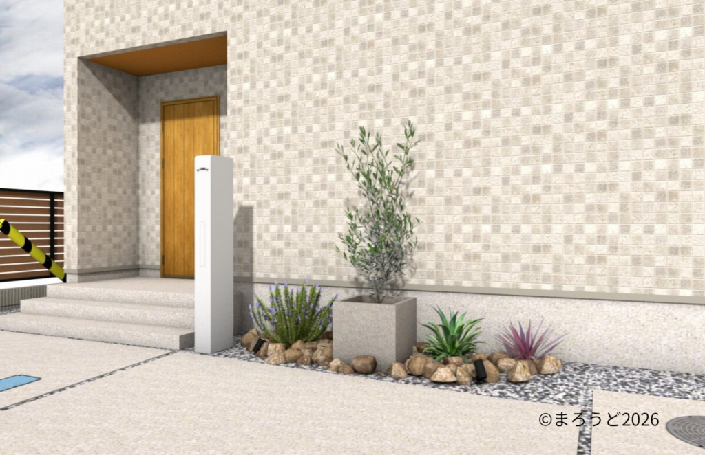 お施主様は《門柱の横に植栽を入れたい。その植栽を壁に照らしたい。》ということでした。