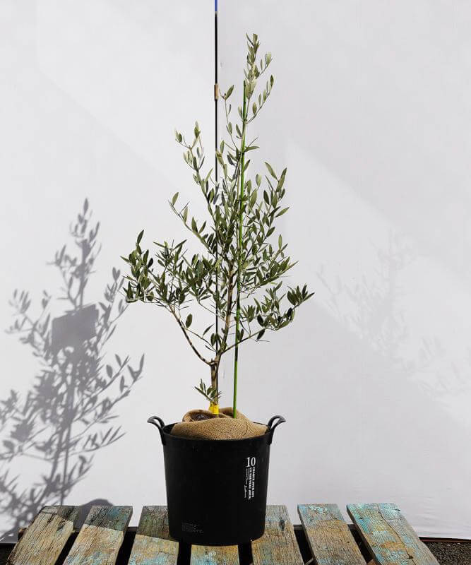 ポット「ユニソン マグナスキュビM 500角 グレー」にオリーブを植えました。