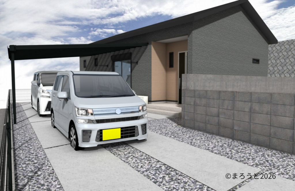 お施主様は《雨に濡れないように洗濯物と車を停める場所に屋根が欲しい。》ということでした。