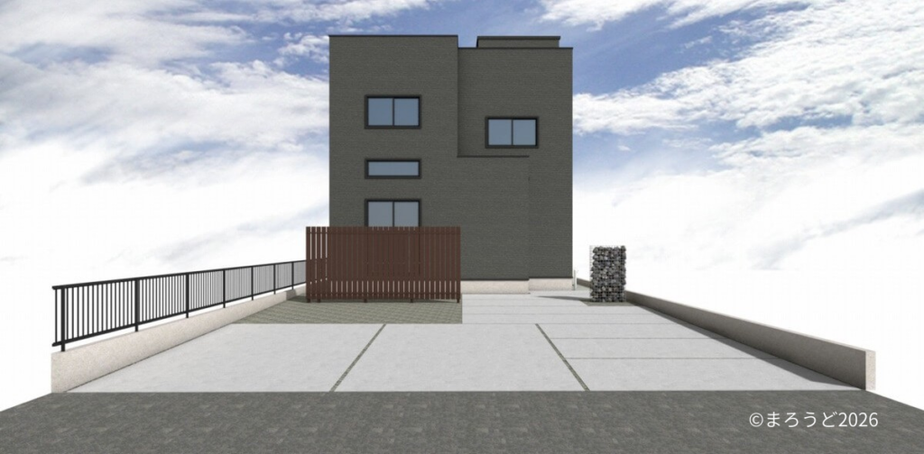 北側・西側の境界は既存コンクリートブロックの上にフェンス「三協アルミ マイエリアⅡ H800 ブラック」を設置しました。