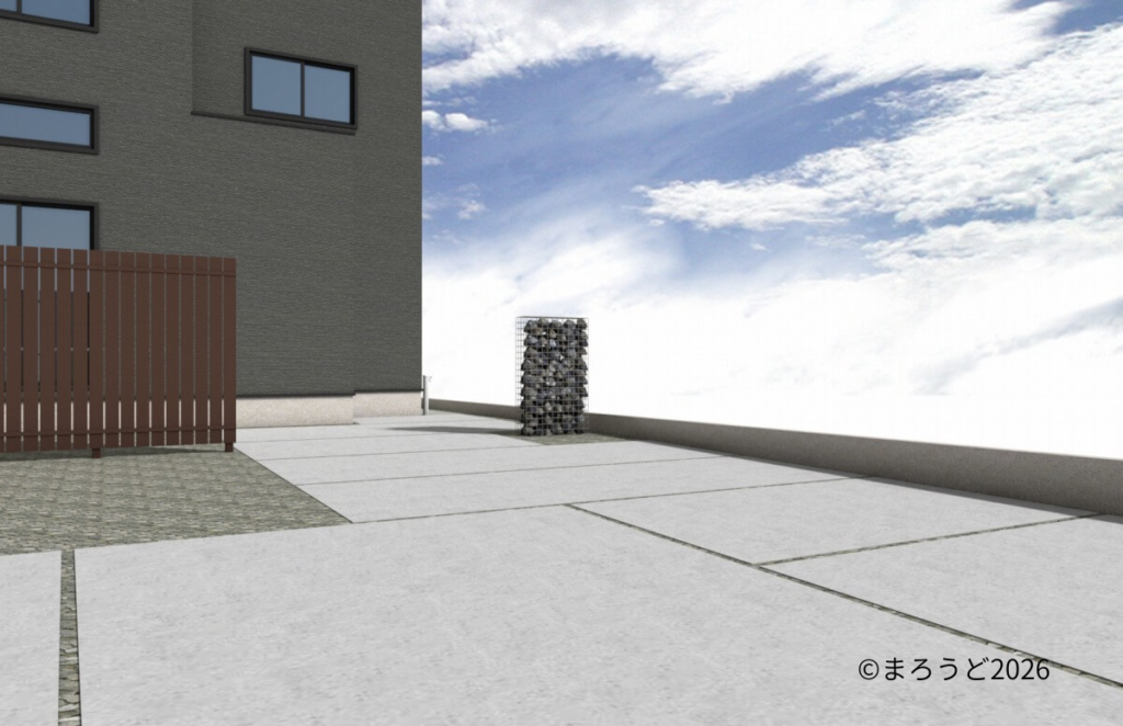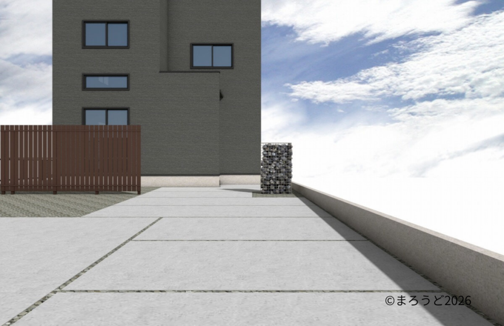 →施工事例「ガビオンの門壁が印象的!洗練された新築外構です」