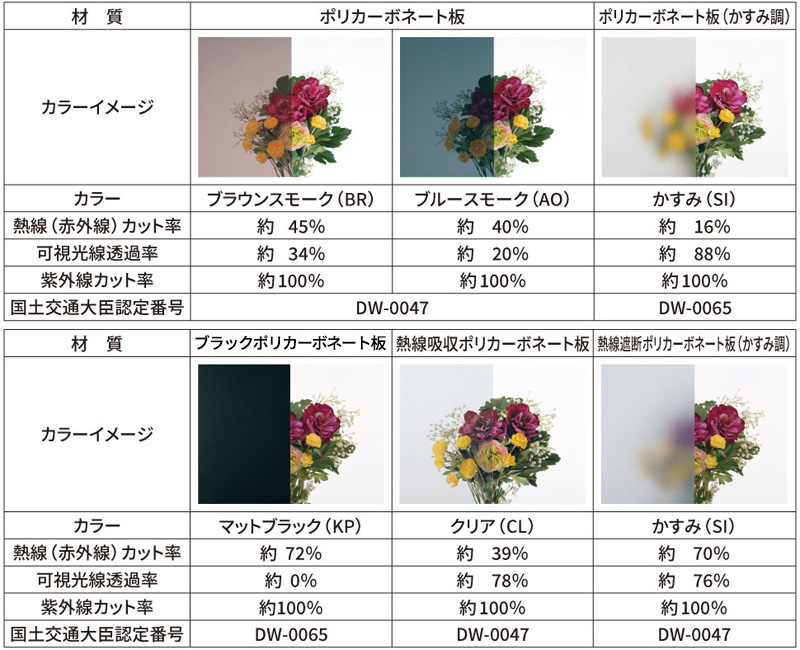 ポリカーボネート板価格の約2割UPで取り付け可能です。