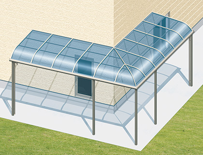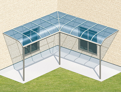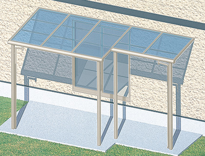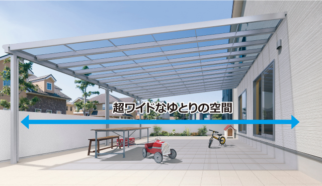 カーポートなど多用途に活躍する出幅ワイドタイプ。10尺から15尺まで1尺単位で規格。F型関東間には18尺・20尺の超ワイドタイプも規格しています。