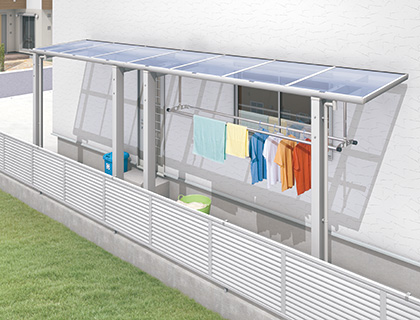 雨の心配がない洗濯物干し場として、キッチンやユーティリティ近くの裏方スペースとして、バイクや自転車置き場として、ワイドタイプならカーポートとしても、使う人に合わせて柔軟に対応できます。