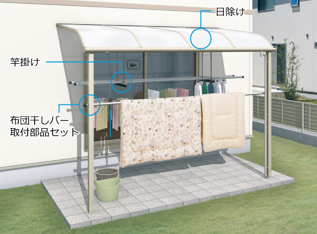 日除けから竿掛け、物干しアイテムまでさまざまなオプションをご用意しています。