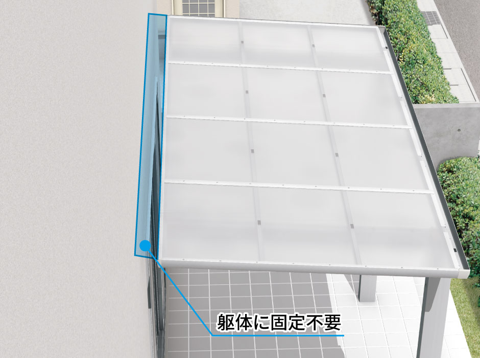 テラス本体にすき間カバーを取り付けるため、外壁に一切ねじ止めをしない仕様です。