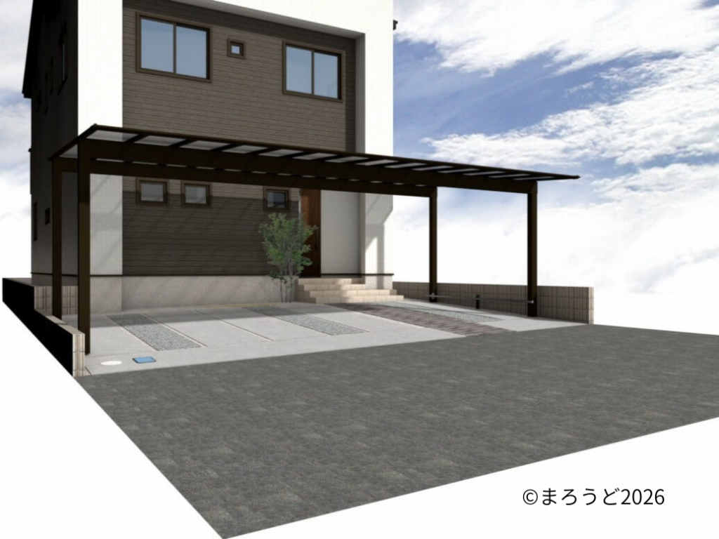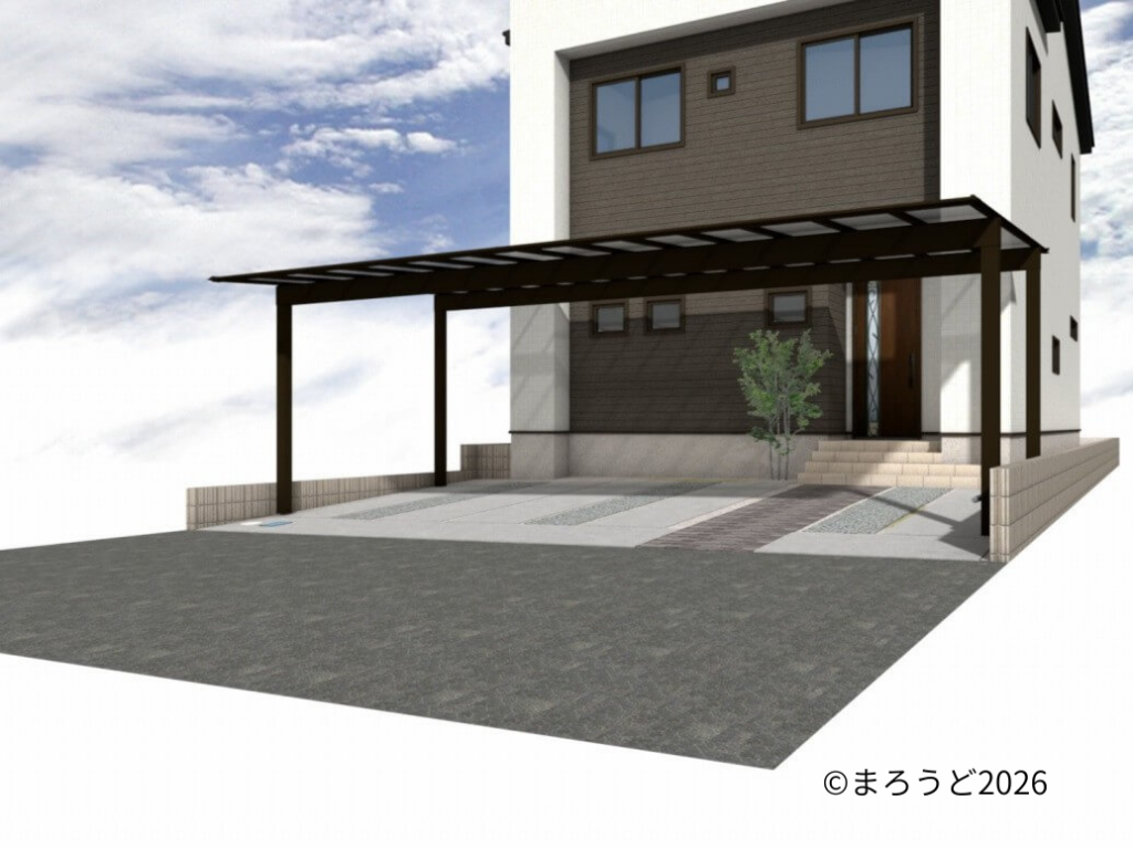 お施主様は《自動車2台と自転車も置けるカーポートが欲しい。》ということでした。