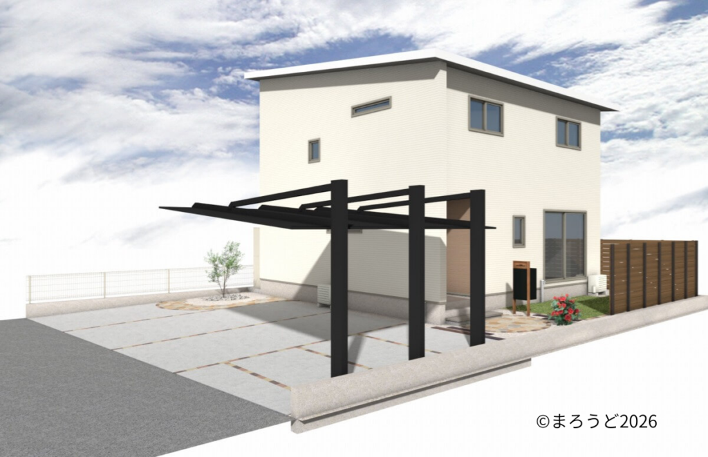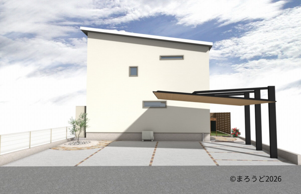 お施主様は《後方支持2台用のカーポートSCが欲しい。お庭を目隠しフェンスで囲いたい。》ということでした。