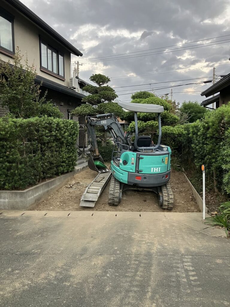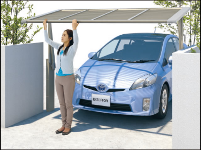 カーポート「三協アルミ スカイリード」を奥行きカットで施工しました。オプションでパネル抜け防止材とサポート柱も付け、コンクリート打ちしました。