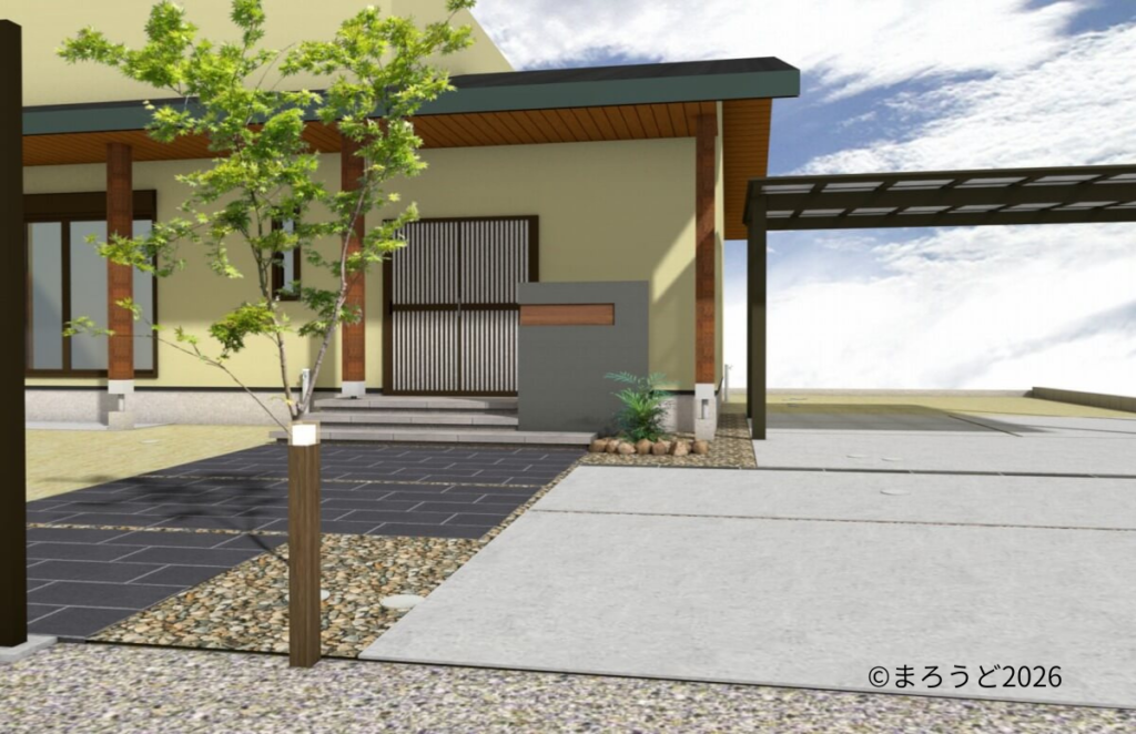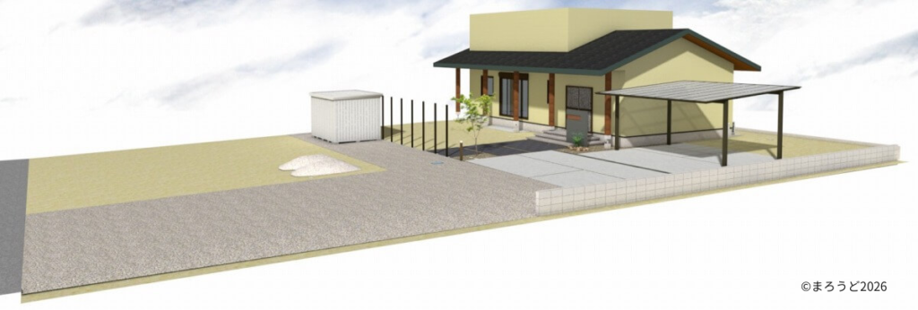 広い敷地の余白を大事にした新築外構です。