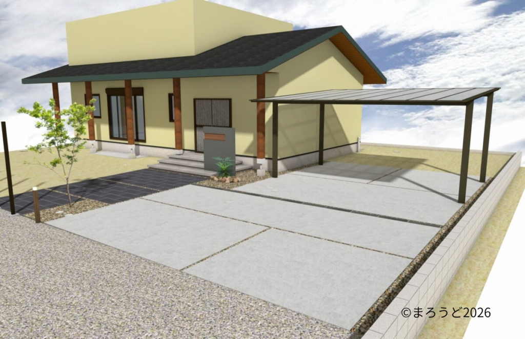 駐車場はコンクリート刷毛引き仕上げとしました。