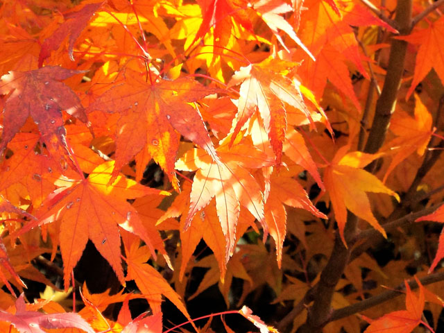 紅葉狩りはもちろん、初夏の爽やかな新緑、赤や黄色の小さな花、竹トンボのような形の実など一年中楽しめるのが魅力です。