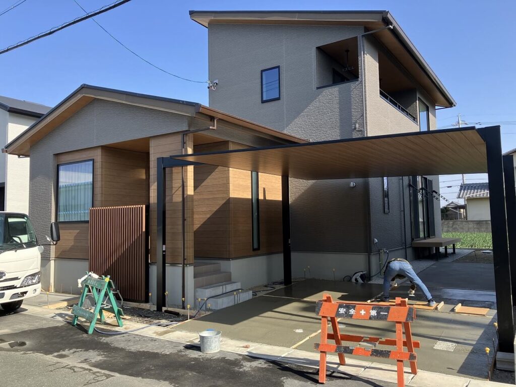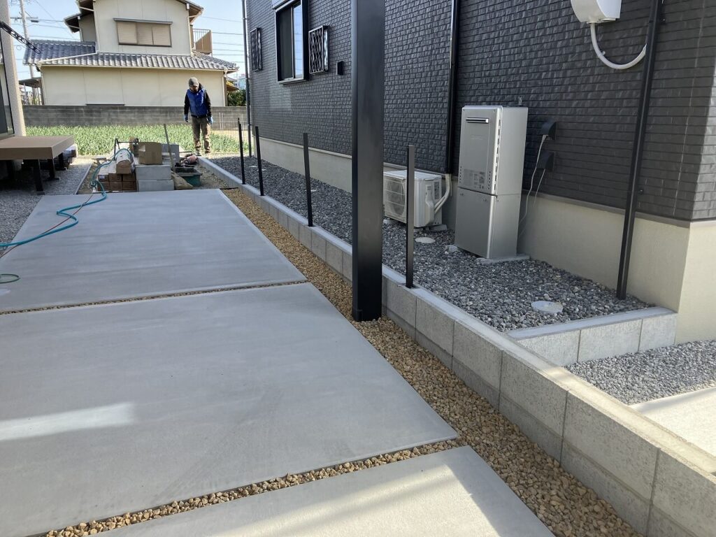 駐車場とスロープはコンクリート打ちしました。