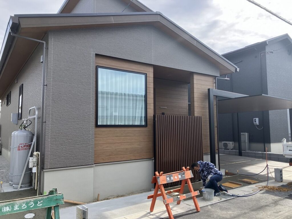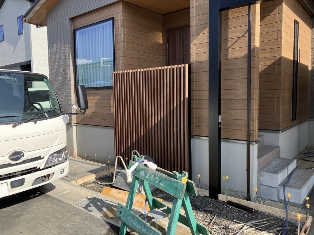 統一された木目調がポイントの新築外構です。