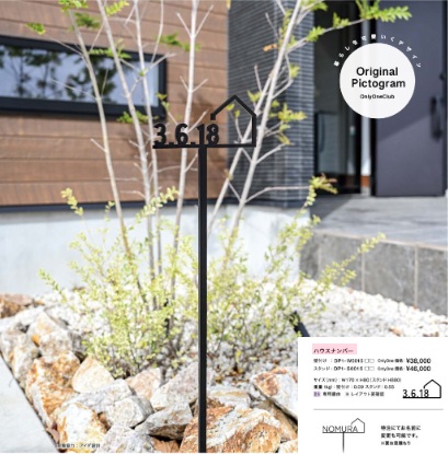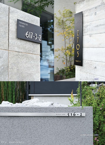 その中のハウスナンバーのプレートは、カラーはブラックとホワイトを採用し、壁付けとスタンドの2タイプを用意しました。