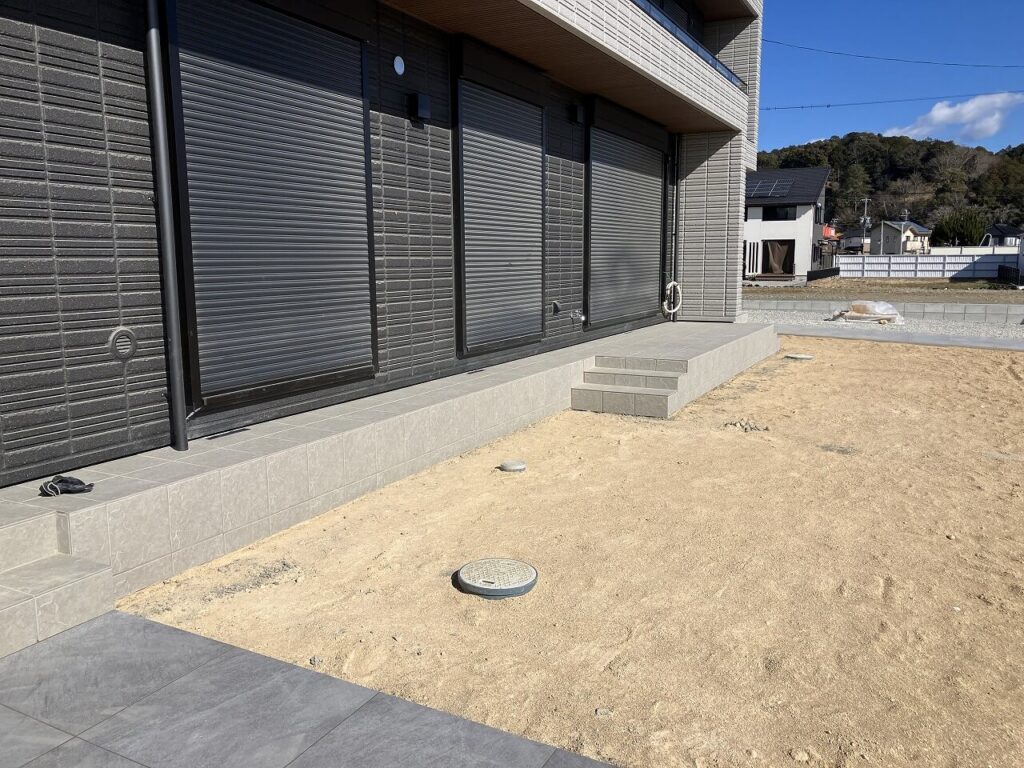 タイルデッキ「INAX グレイスランド 300角」をステップ2段を2ヶ所設置しました。