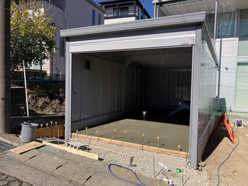 ガレージ内はコンクリート金ゴテ仕上げで施工しました。