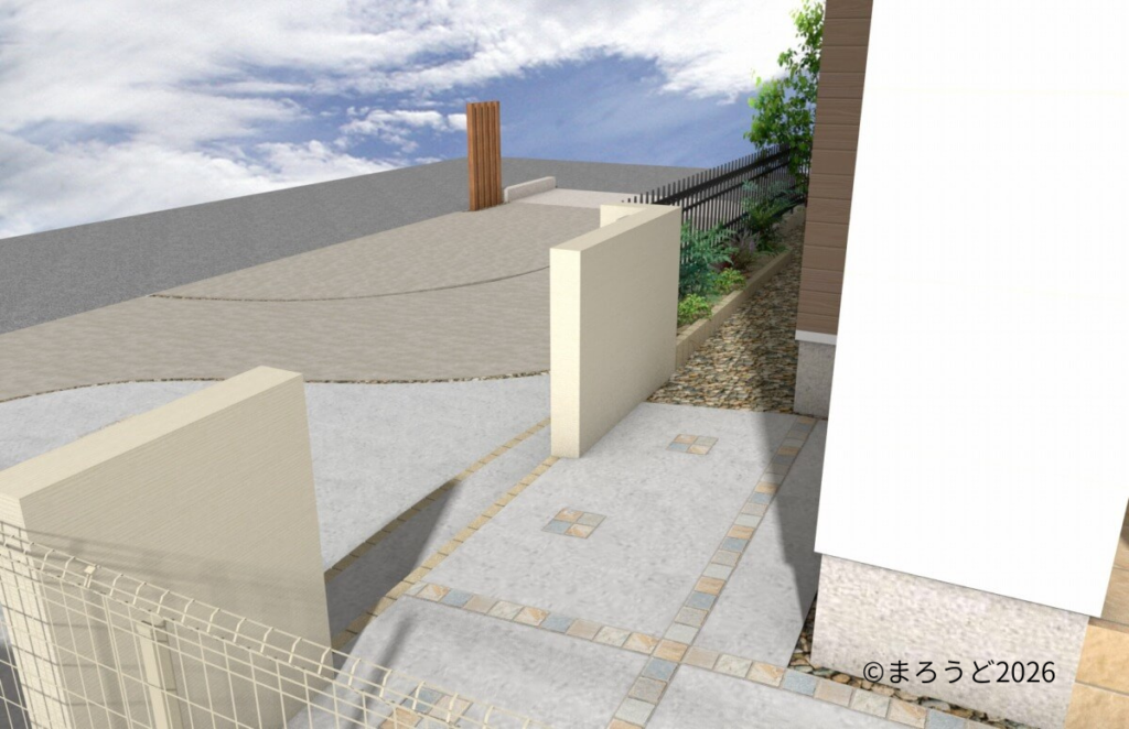 お施主様は《門を後退させて駐車場を広げたい。既存のイメージは残したい。花壇も欲しい。》ということでした。