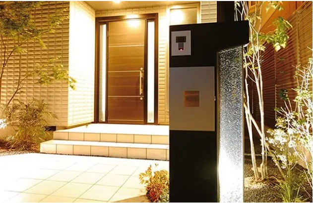 専用の大型ガラスモニュメントをセットしたエクアライブのオリジナル機能門柱『Ray back(レイバック)』。