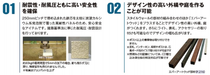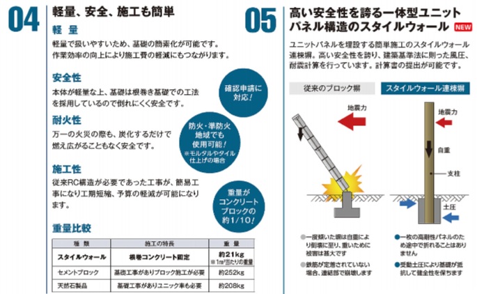 タカショーの新商品『スタイルウォール』は、ユニットパネルを埋設する簡単施工で、重量はコンクリートブロックの約1/10です。