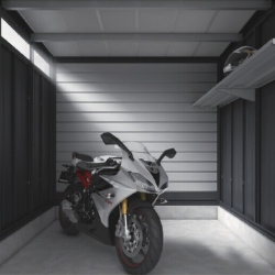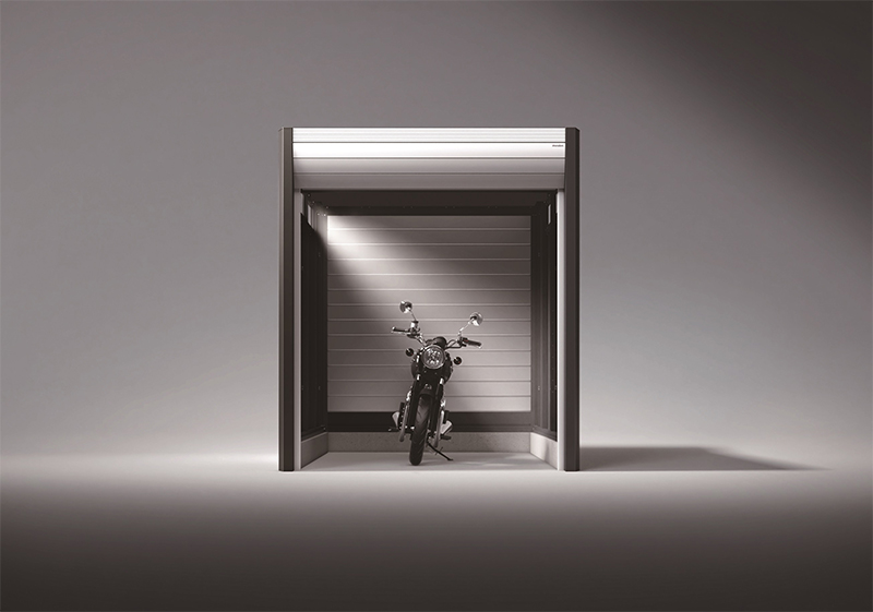洗練された佇まいとカラーリング。優れた防犯性を備えたデザイナーズバイクガレージです。