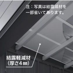 結露の発生を抑えるオプションの結露軽減材【不燃材料認定番号 NM-3431-1(2)】付屋根は積雪地域におすすめします。