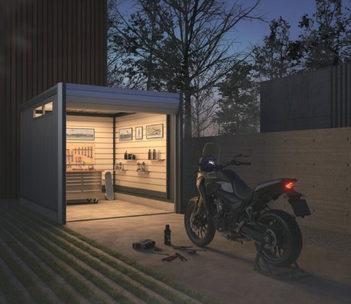 外部から覗きづらく、庫内にやわらかい自然光を取り込む高窓や、インテリアの印象を明るく変えるスチール製の内壁を配置することで、より上質な空間を実現します。出入り口として便利な引戸や、収納力を高める棚板など、豊富なオプションで理想の空間にカスタマイズ可能です。
